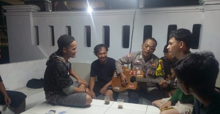 Personil Bhabinkamtibmas Menyapa Pemuda di Pos Ronda Leuweungsawo, Berikan Himbauan kamtibmas