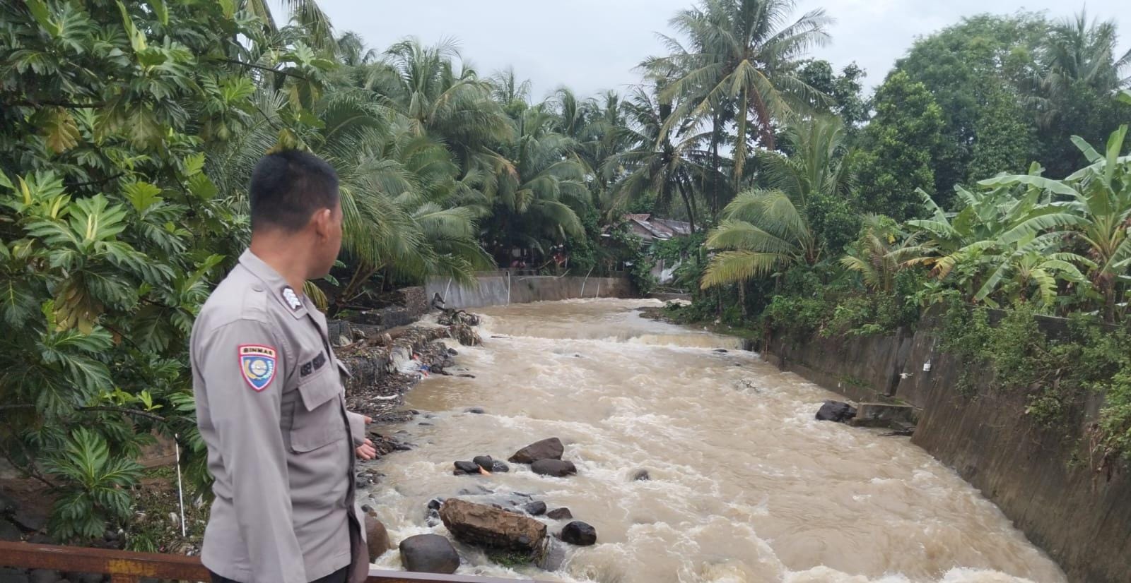 Patroli Polsek Anyar Pantau Debit Air Wilayah Pasca Hujan Deras