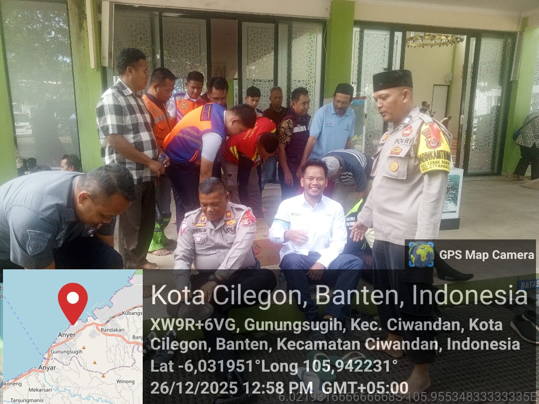 Cilegon - Bhabinkamtibmas Polsek Ciwandan Polres Cilegon Polda Banten Selesai melaksanakan Sholat secara berjama’ah dan Sampaikan Himbauan-himbauan Kamtibmas Kepada Masyarakat Jama'ah Yang ada Dimasjid, Jum'at (26/12/2025).