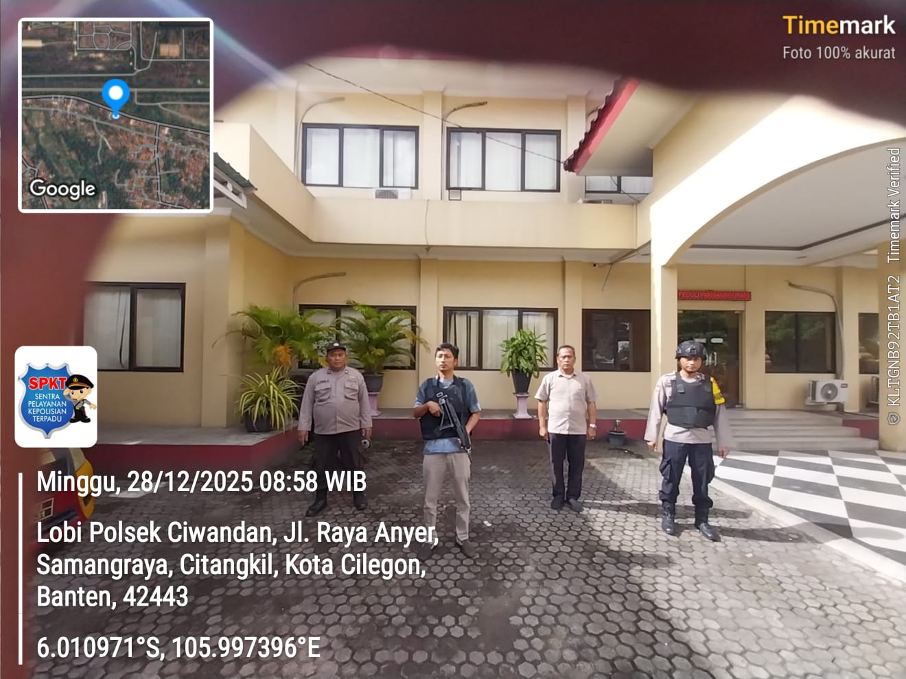 Cilegon - Guna mengantisipasi adanya potensi ancaman dan gangguan terhadap keamanan kantor maupun keselamatan personel piket jaga, Personil Polsek Ciwandan Polres Cilegon Polda Banten selalu tingkatkan kesiapsiagaan dan kewaspadaan dengan rutin menggelar kegiatan Sistem Pengamanan Mako (Sispam Mako), Sabtu (27/12/2025).