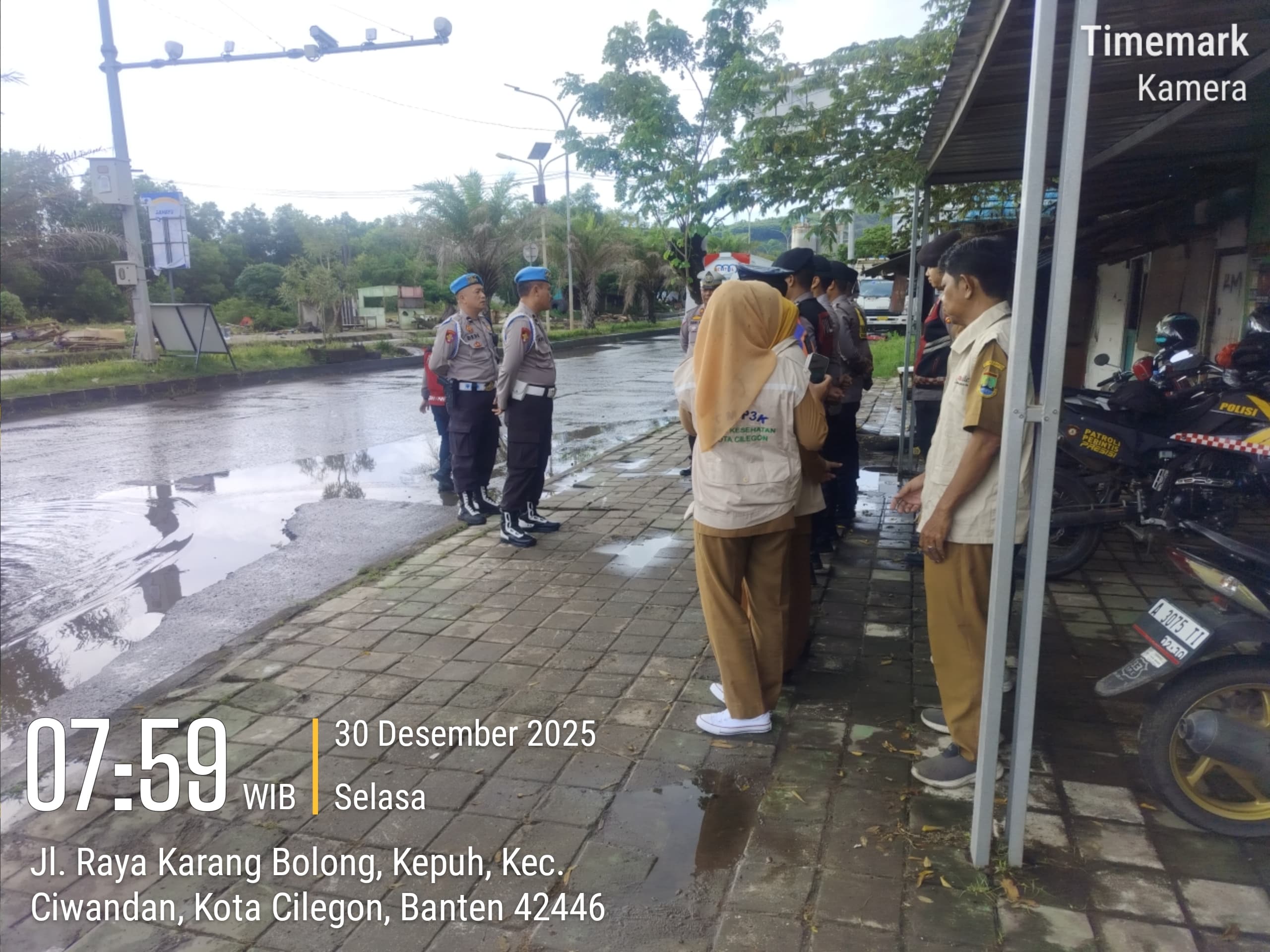 Cilegon - Personil Pospam 5 Ciwandan Polsek Ciwandan Polres Cilegon Polda Banten melaksanakan Apel Kesiapan Pelaksanaan kegiatan pengamanan Arus Lalu-lintas Wisata Dalan Operasi Lilin Maung 2025, Selasa (30/12/2025).