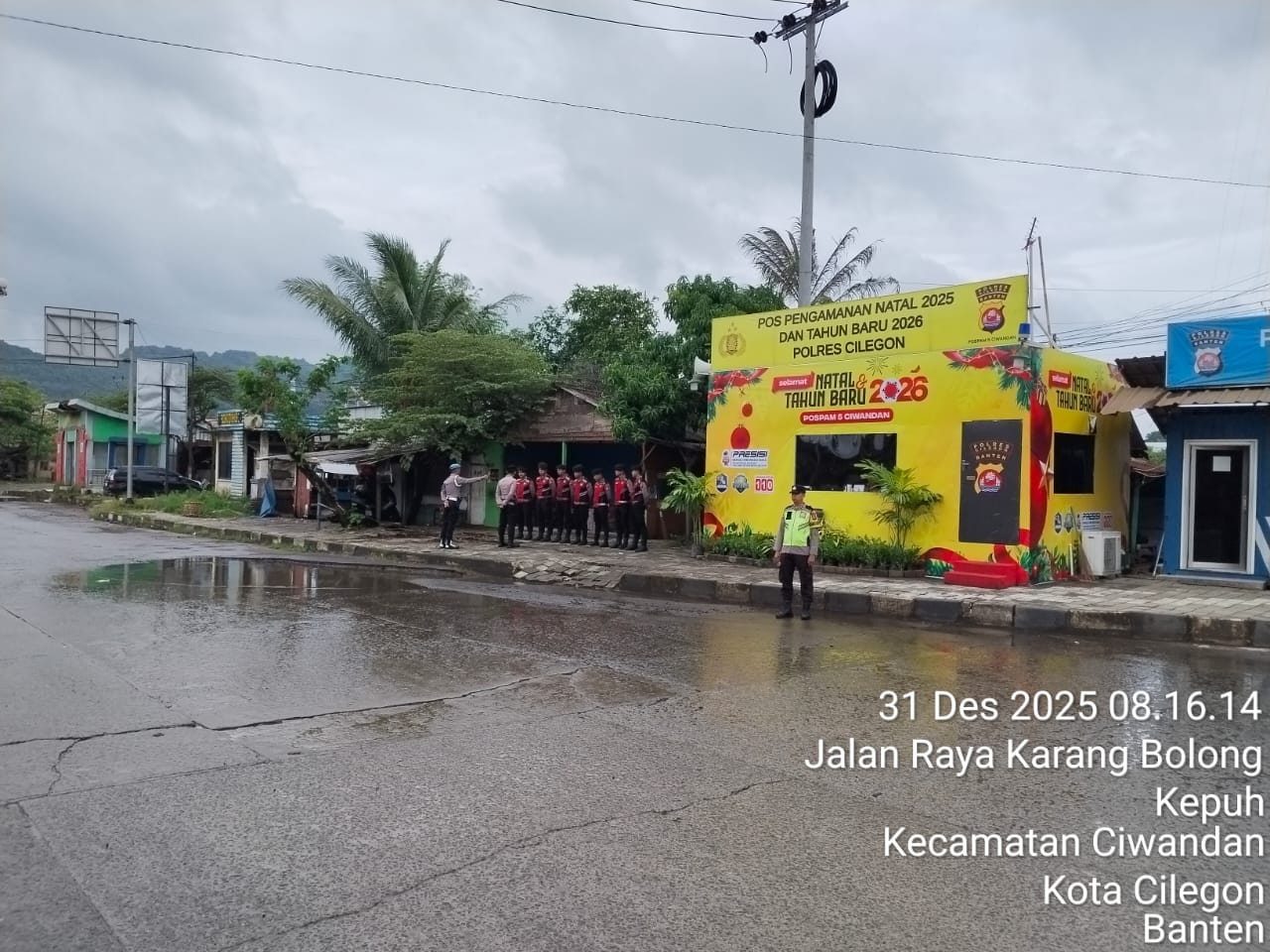 Cilegon - Personil Pos Pam 5 Polsek Ciwandan Polres Cilegon Polda Banten melaksanakan kegiatan pengaturan lalu-lintas dalam pengamanan Libur Natal 2025 Dan Tahun Baru 2026. Selasa (30/12/2025).