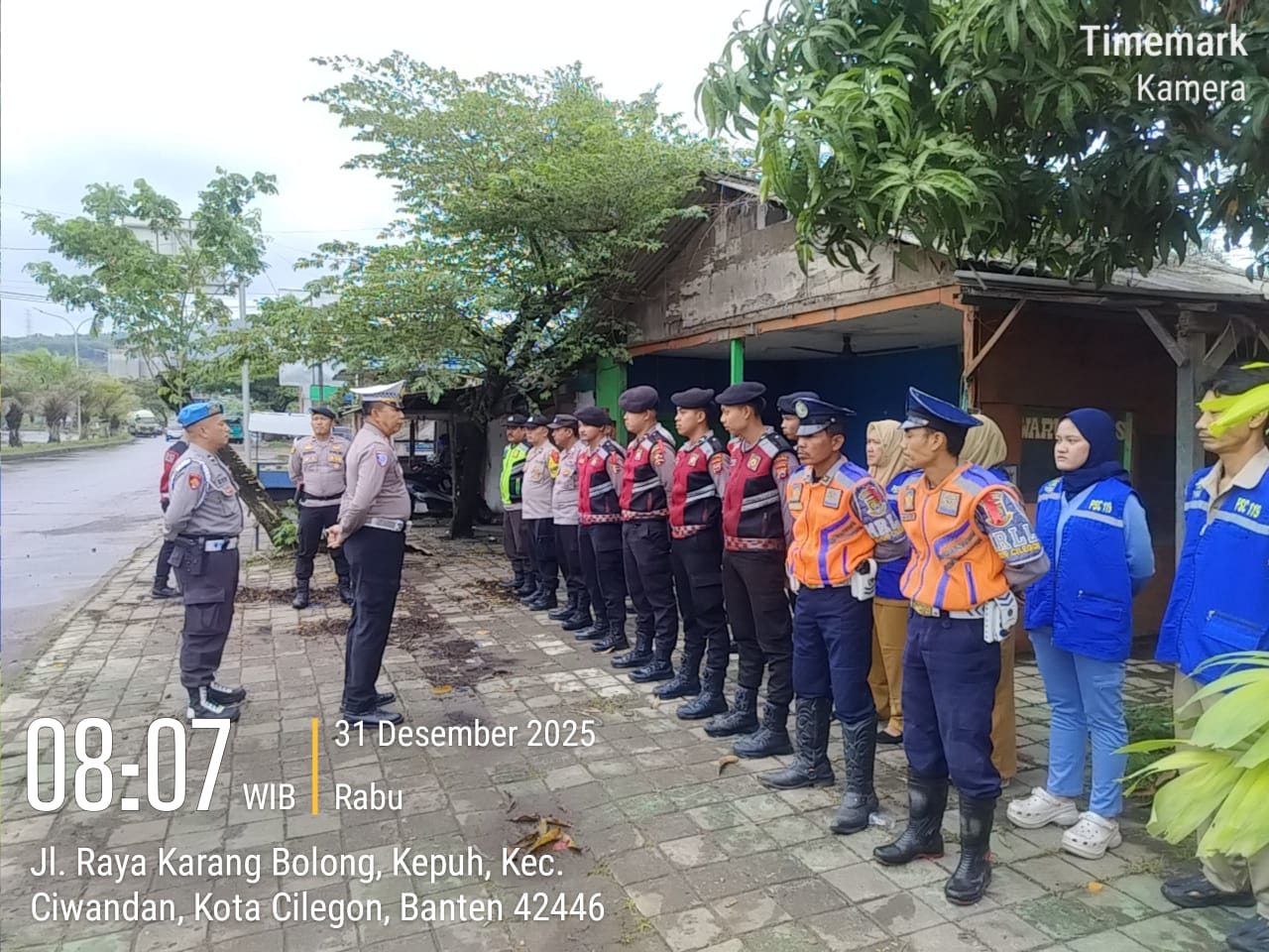 Cilegon - Personil Pospam 5 Ciwandan Polsek Ciwandan Polres Cilegon Polda Banten melaksanakan Apel Kesiapan Pelaksanaan kegiatan pengamanan Arus Lalu-lintas Wisata Dalan Operasi Lilin Maung 2025, Rabu (31/12/2025)