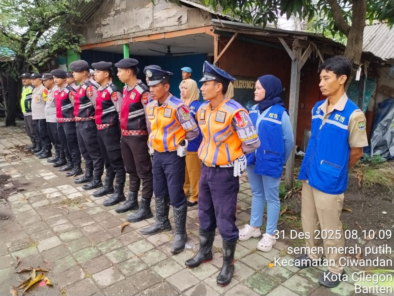 Cilegon - Personil Pospam 5 Ciwandan Polsek Ciwandan Polres Cilegon Polda Banten melaksanakan Apel Kesiapan Pelaksanaan kegiatan pengamanan Arus Lalu-lintas Wisata Dalan Operasi Lilin Maung 2025, Rabu (31/12/2025)