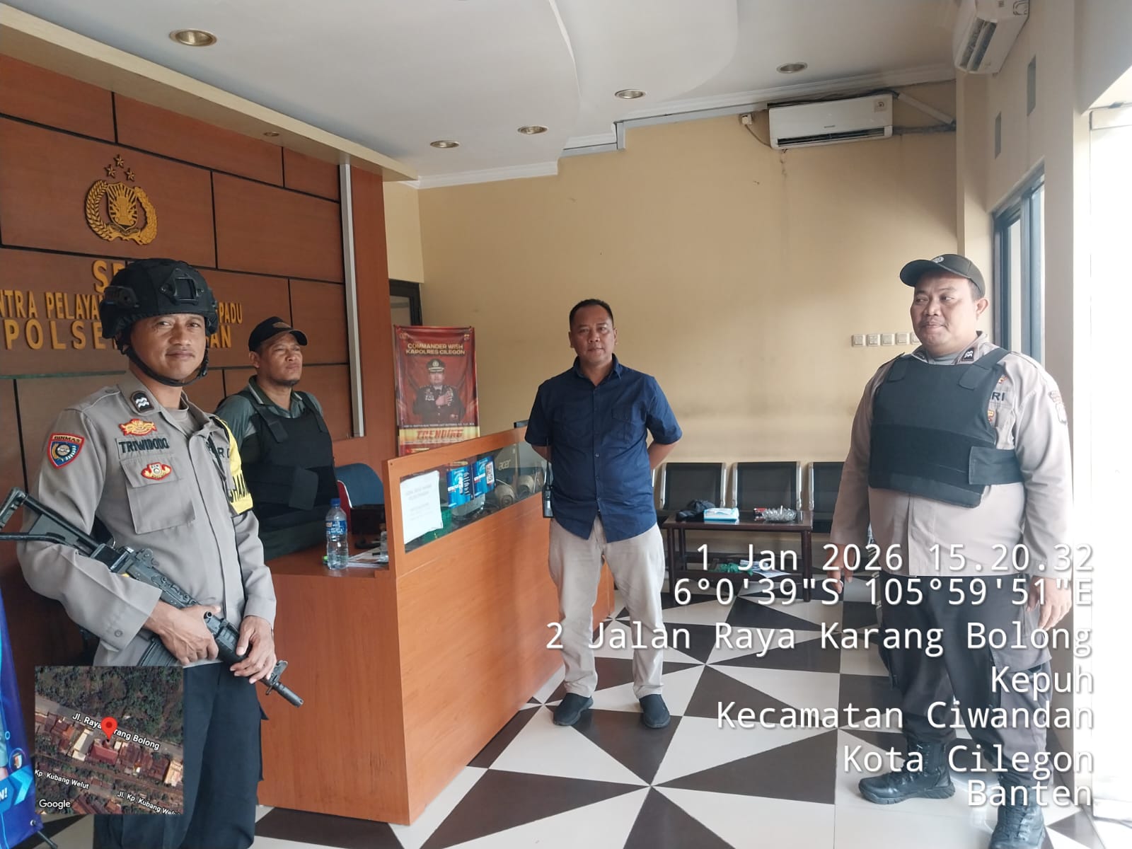 Cilegon - Guna mengantisipasi adanya potensi ancaman dan gangguan terhadap keamanan kantor maupun keselamatan personel piket jaga, Personil Polsek Ciwandan Polres Cilegon Polda Banten selalu tingkatkan kesiapsiagaan dan kewaspadaan dengan rutin menggelar kegiatan Sistem Pengamanan Mako (Sispam Mako), Kamis (01/01/2026).