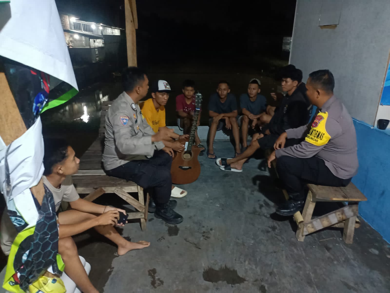 Anggota samapta Polsek Cilegon sambangi ronda malam sampaikan pesan kamtibmas*
