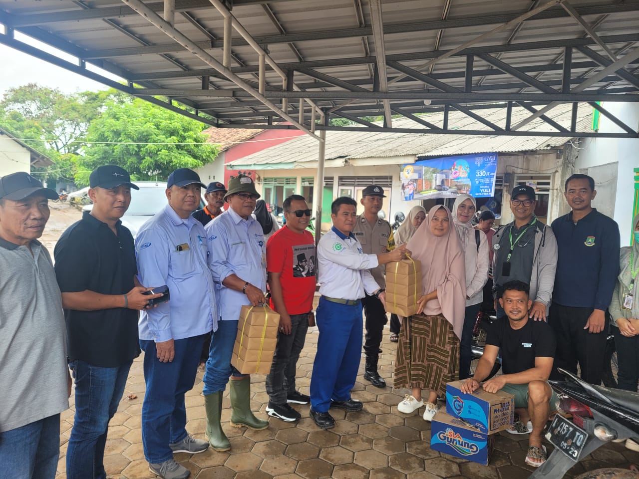 Cilegon - Polres Cilegon melalui Bhabinkamtibmas menghadiri kegiatan pemberian bantuan makanan siap saji di Lingkungan Gambiran, Kel. Gunung Sugih, Ciwandan. Bantuan ini disalurkan oleh FIKS (Forum Industri Kepuh dan Gunung Sugih) dan PT. Kenertec sebanyak 300 Box untuk 62 KK warga terdampak banjir pada Sabtu (03/012026).
