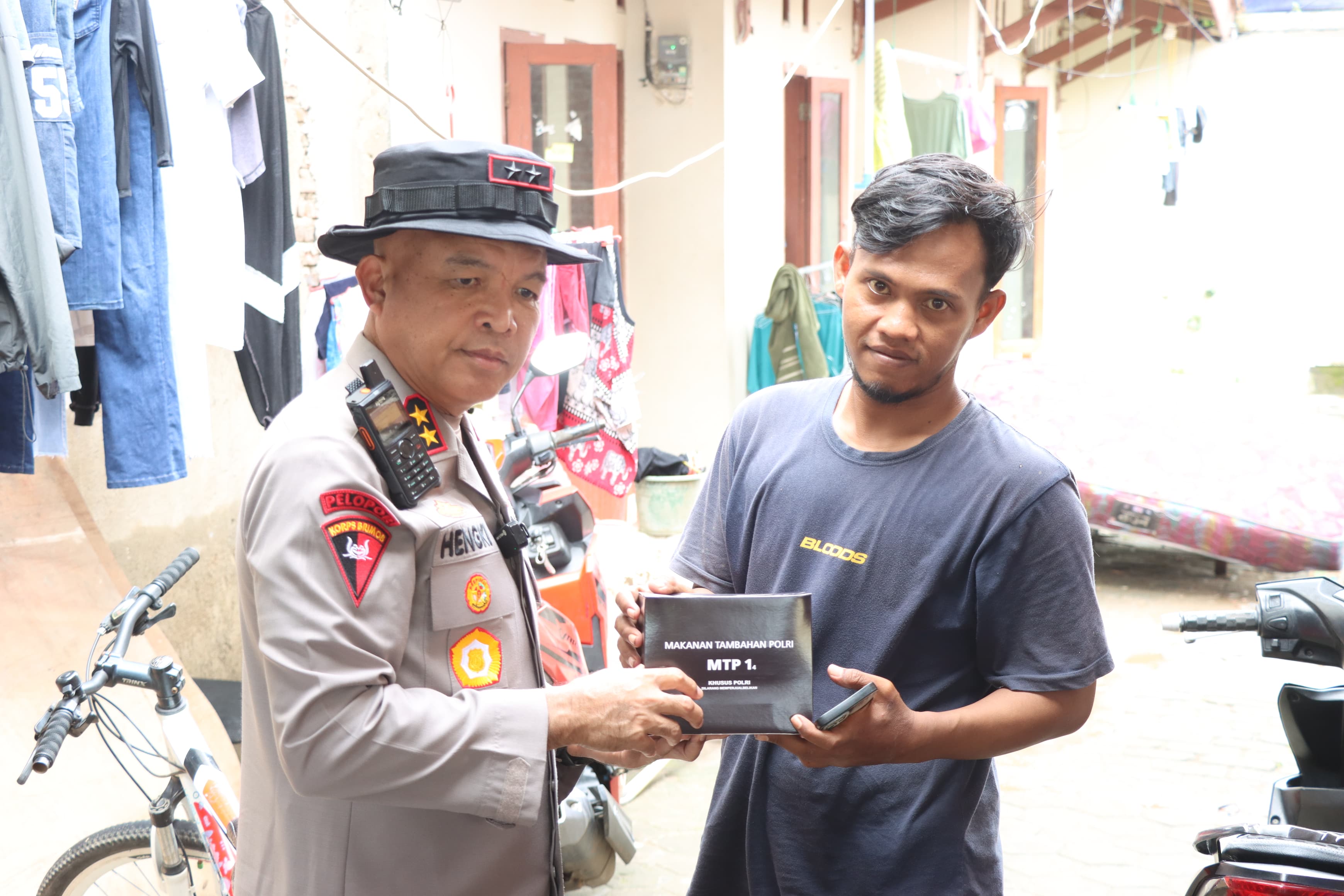 Usai meninjau dapur umum, Kapolda Banten melanjutkan pengecekan ke lokasi banjir di Lingkungan Sambirata RT 005/003, Kelurahan Cibeber, Kecamatan Cibeber. Di lokasi tersebut, Kapolda melihat langsung kondisi pemukiman warga yang terdampak banjir sekaligus menyerahkan bantuan makanan kepada masyarakat sebagai bentuk empati dan dukungan moril.
