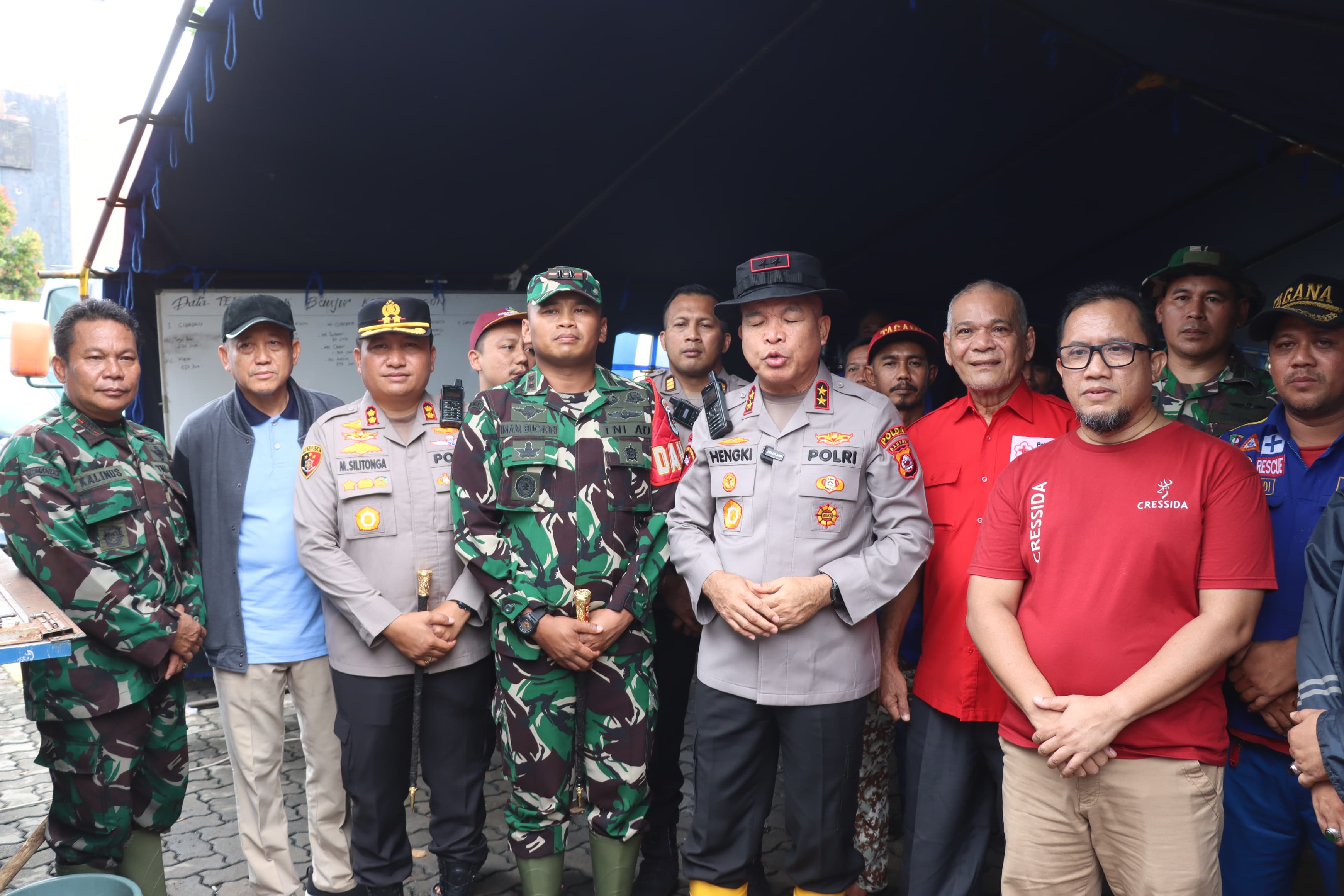 Usai meninjau dapur umum, Kapolda Banten melanjutkan pengecekan ke lokasi banjir di Lingkungan Sambirata RT 005/003, Kelurahan Cibeber, Kecamatan Cibeber. Di lokasi tersebut, Kapolda melihat langsung kondisi pemukiman warga yang terdampak banjir sekaligus menyerahkan bantuan makanan kepada masyarakat sebagai bentuk empati dan dukungan moril.
