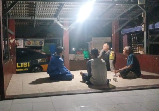 -POLRES CILEGON–Polda Banten. Personil Bhabinkamtibmas Aiptu Daryo.E melaksanakan patroli dialogis dengan menyapa petugas jaga ronda serta memberikan himbauan ketertiban dan keamanan masyarakat (kamtibmas) kepada warga di Lingkungan Daliran, Kelurahan Kebondalem, Kecamatan Purwakarta, Kota Cilegon.Minggu.(04-01-2026).