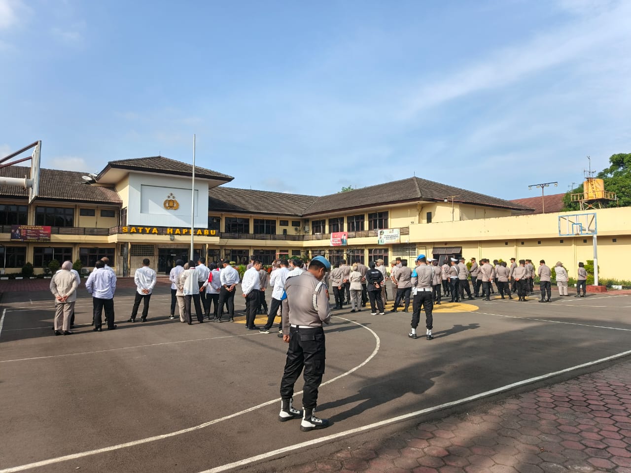 provos polres cilegon lakukan pengechekan terhadap kehadiran personil