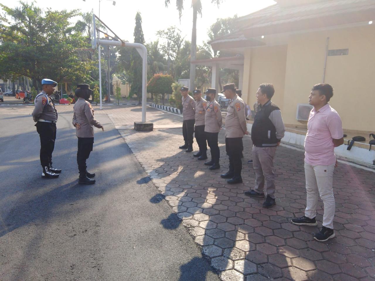 Cilegon,Polres Cilegon Polda Banten Pada Minggu 10/01/2026 Pukul 08.00 Wib,Brigadir Hadi Sudrajat  melaksanakan kegiatan apel peleton kerangka dua di lapangan apel Polres Cilegon.