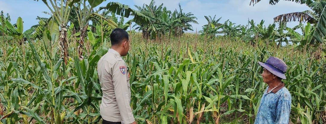 Dalam kegiatan monitoring ini, Bhabinkamtibmas meninjau langsung kondisi lahan jagung.