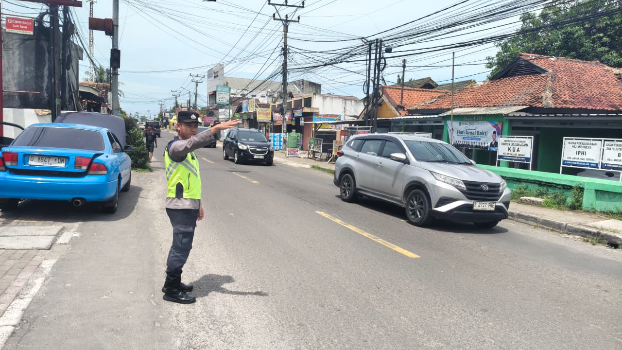 Selain pengaturan arus lalu lintas, petugas juga melakukan pemantauan