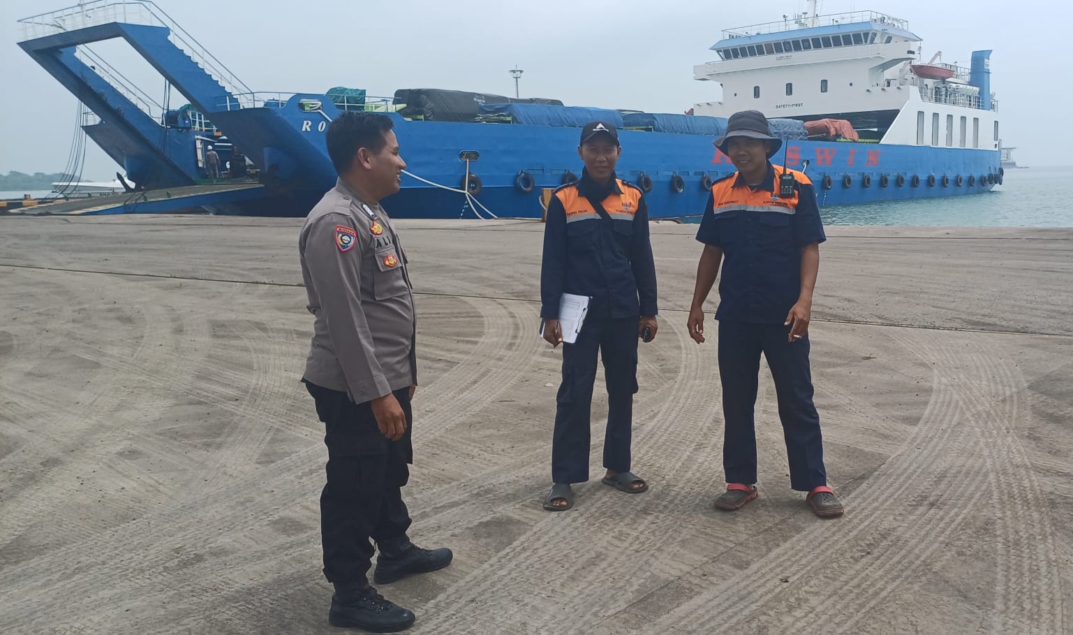Jalin Silaturahmi, Bhabinkamtibmas Pelabuhan Polsek KP Banten berbincang ke Buruh Pelabuhan