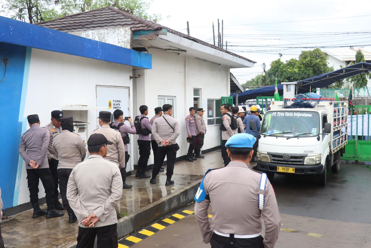 Cilegon – Polres Cilegon Polda Banten melaksanakan pengamanan kegiatan aksi unjuk rasa lanjutan yang digelar Dewan Pimpinan Cabang Federasi Serikat Pekerja Kimia, Energi dan Pertambangan (DPC FSPKEP) Kota Cilegon di depan Gerbang Masuk PT. Dongjin Indonesia, Jalan Raya Anyer–Sirih Km. 122, Kelurahan Gunungsugih, Kecamatan Ciwandan, Kota Cilegon, Rabu (14/1/2026).