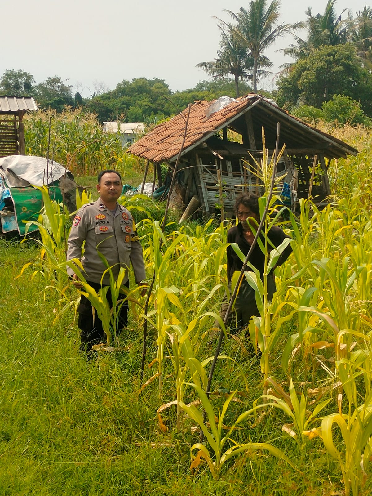 Pantau lahan jagung pok tani sinarjaya kecamatan.puloampel Desa Banyuwangi oleh Bhabinkamtibmas Polsek Puloampel
