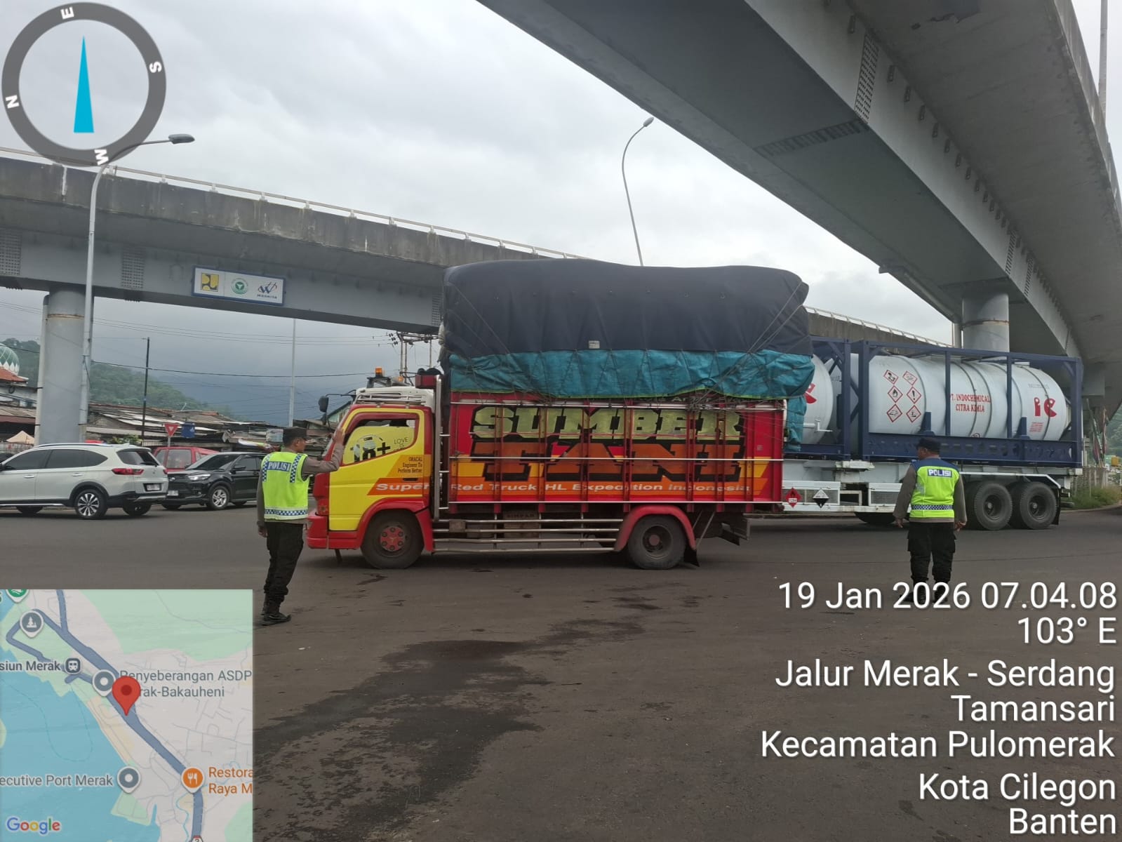 Pengaturan Kendaraan Polsek KSKP Merak Dukung Pelayanan Prima