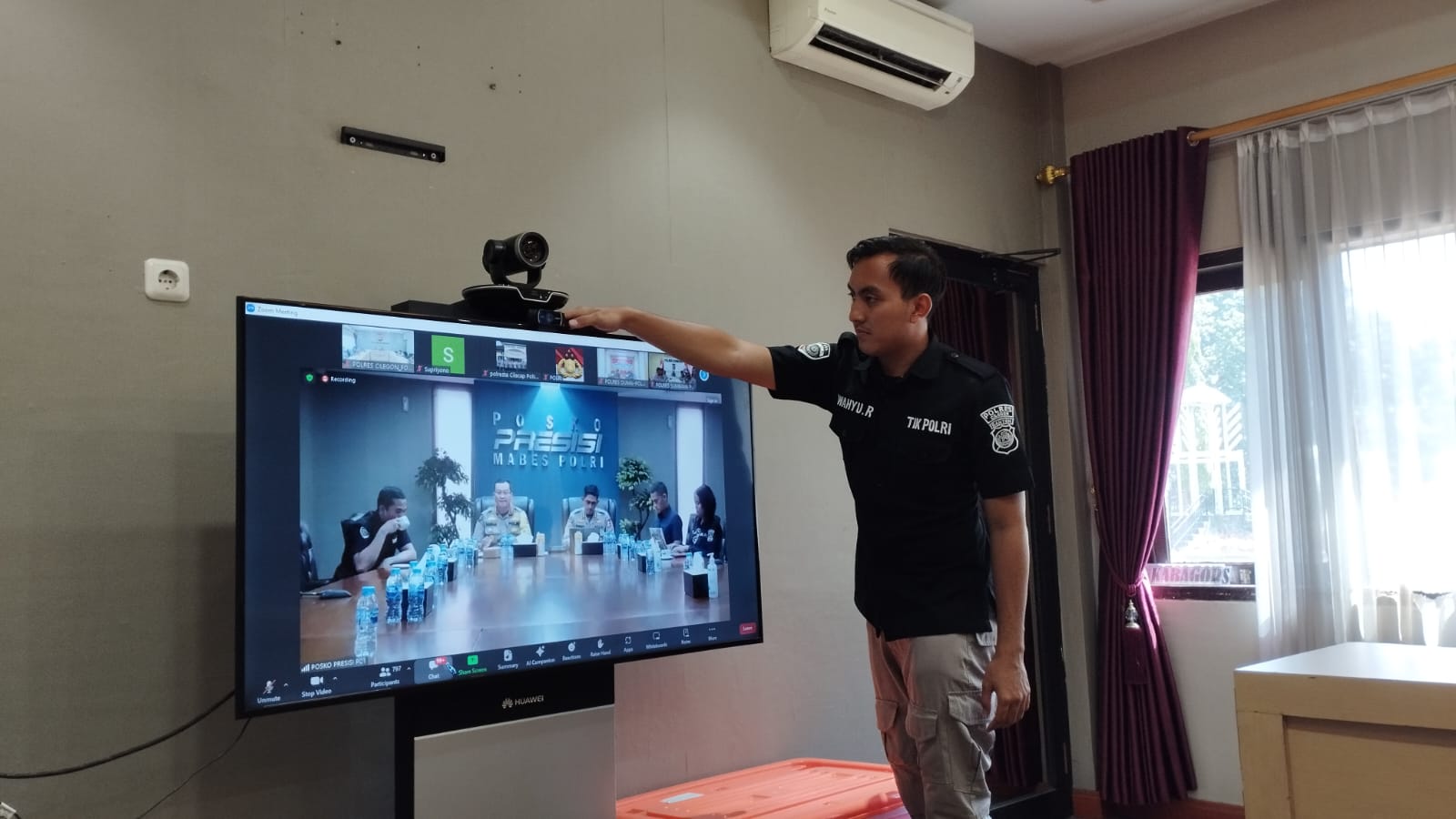 Anggota TIK Polres Cilegon Siapkan Sarana Zoom Meeting