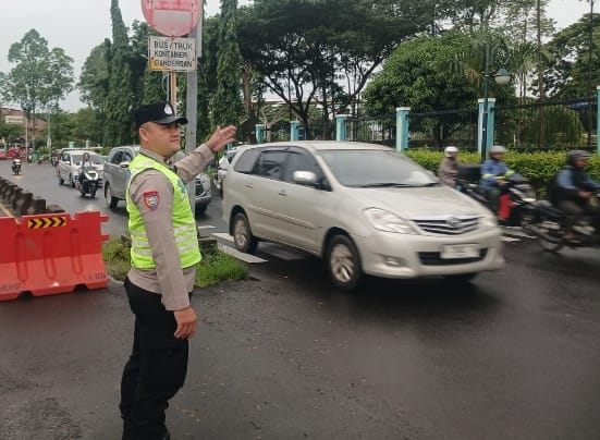 Dalam kondisi lalu lintas yang cenderung padat pada waktu pagi hari, personel yang terlibat bekerja secara profesional dengan mengarahkan kendaraan dari berbagai arah, serta memberikan panduan kepada pengendara agar tetap patuhi peraturan lalu lintas.
