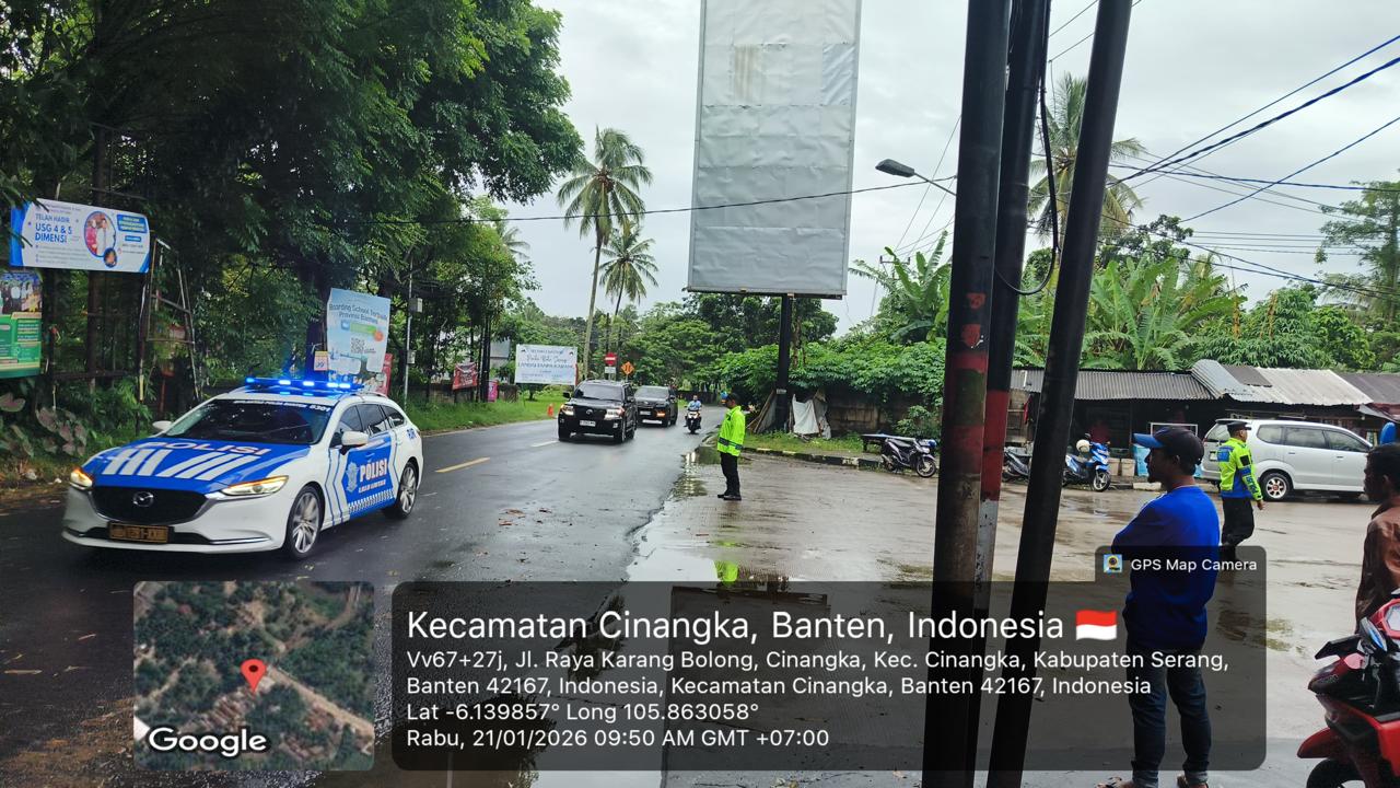 *Polres Cilegon* - Dalam Mewujudkan Aksi Nyata Pelayanan Kepada Masyarakat,Personil Polsek Cinangka Polres Cilegon Polda Banten Laksanakan Strong Poin Pengaturan Lalu-lintas,Rabu (21/01/2026).