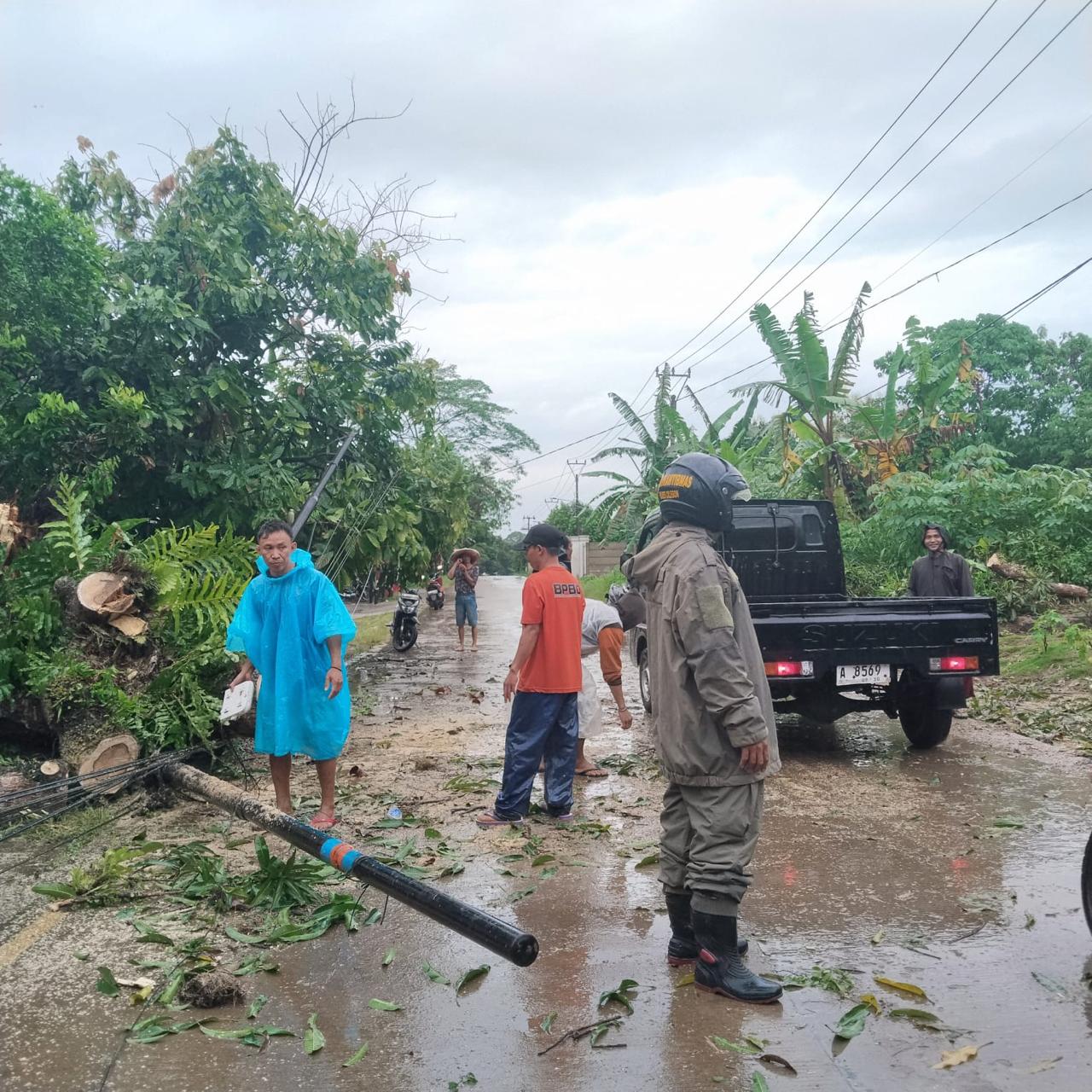 Bersama Petugas BPBD Kab. Serang, dan PLN Kec. Cinangka untuk melakukan evakuasi pohon tumbang bersama dengan masyarakat dan pihak Kepolisian Polsek Cinangka Polres Cilegon Polda Banten