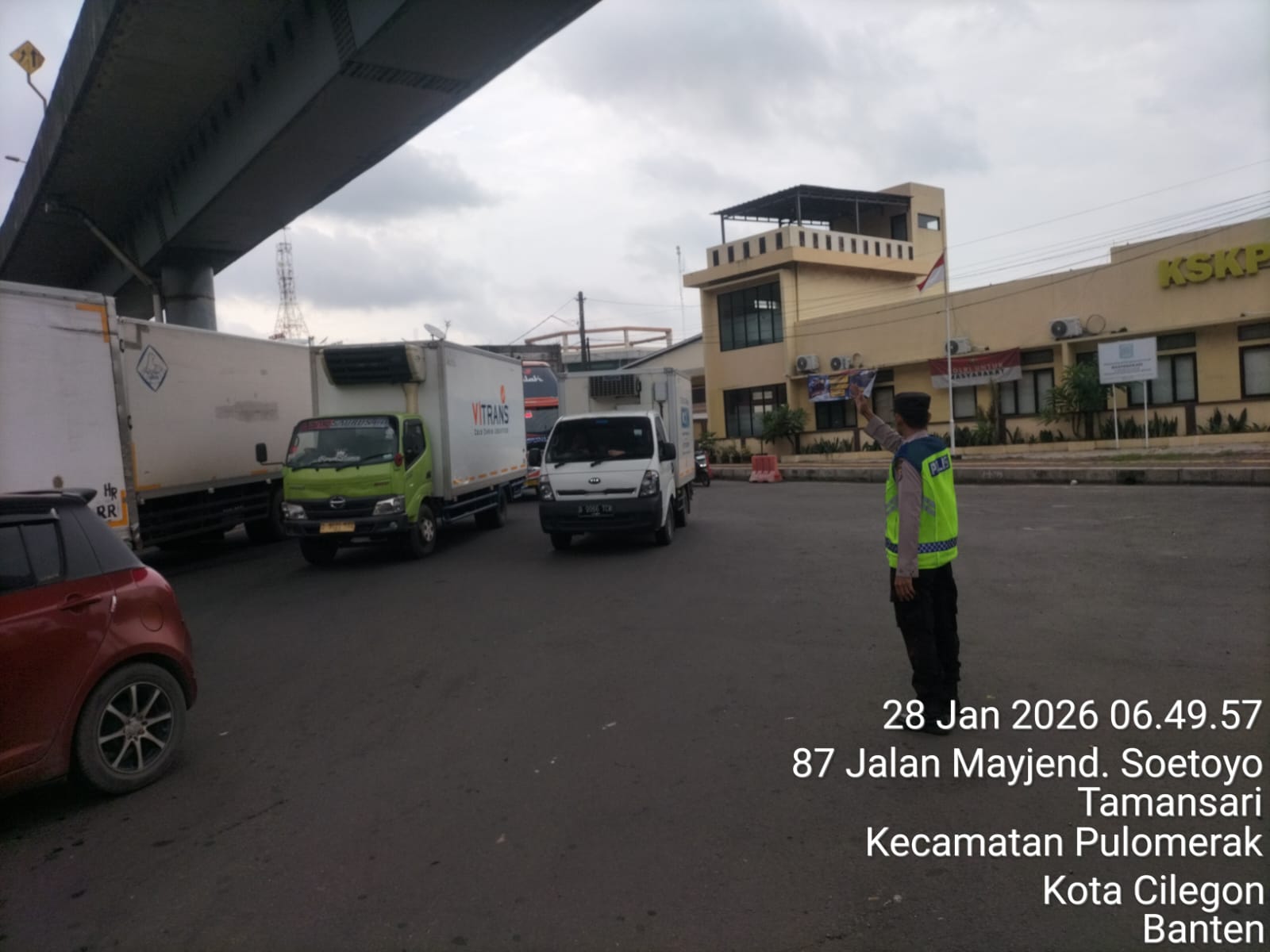 Cilegon - Dalam rangka peningkatan pelayanan prima kepada masyarakat, Kskp Merak Polres Cilegon Polda Banten melaksanakan pengaturan antrian R4 yang akan masuk ke Kapal Ferry di Pelabuhan Merak, Rabu (28/01/2026).