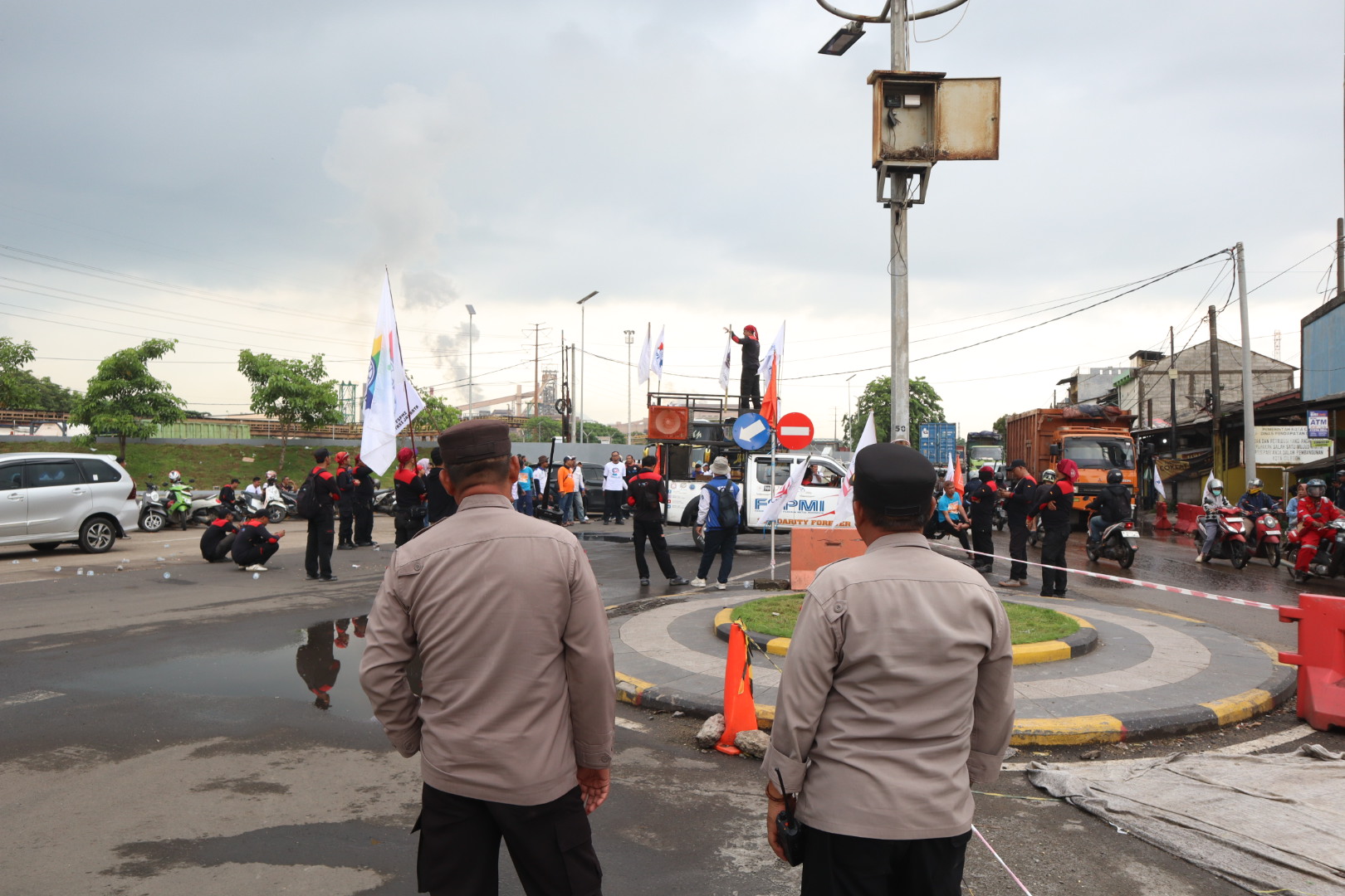 Polres Cilegon Hadir Amankan Aksi Unras FSPMI di PT Krakatau Bandar Samudera