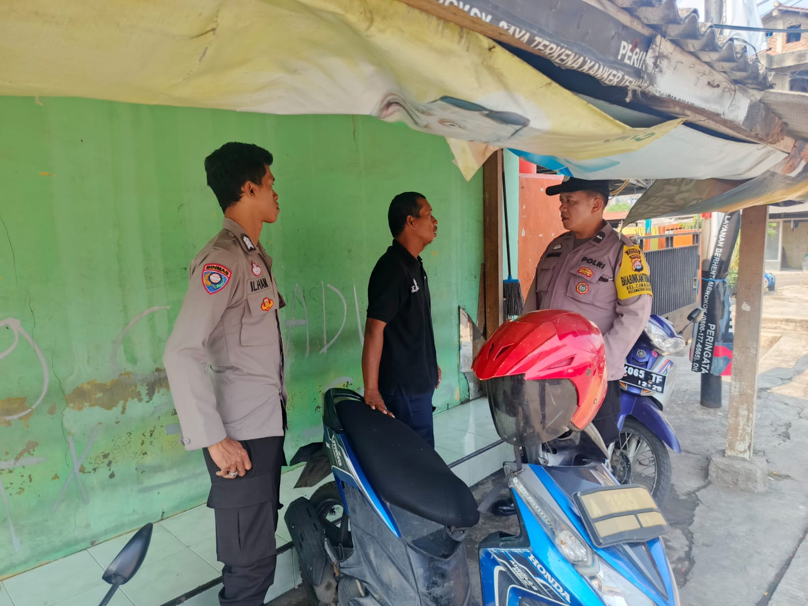 Personil sat intelkam melakukan koordinasi dengan tokoh agama kec. Jombang kota cilegon