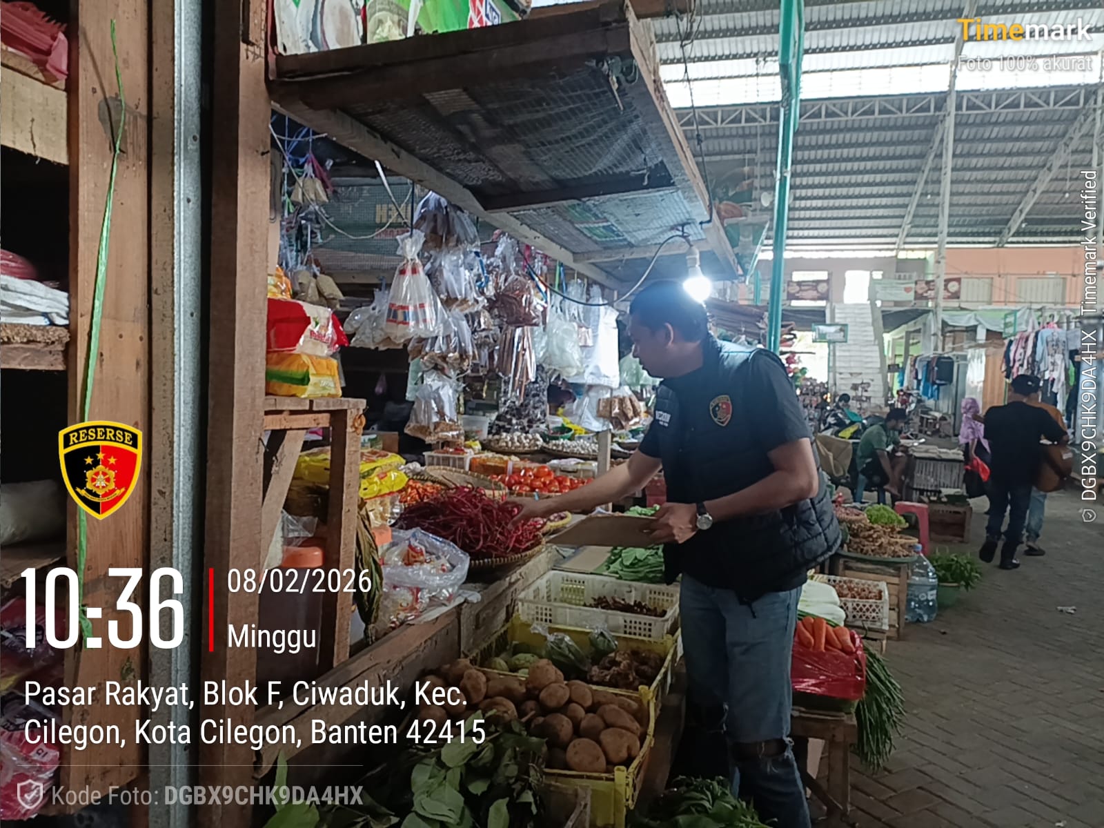 Cilegon – Unit II Satreskrim Polres Cilegon Polda Banten melakukan pengecekan terhadap persediaan dan harga bahan pangan di Pasar Kelapa, Cilegon, di tahun 2026. Minggu tanggal 08 02 2026.