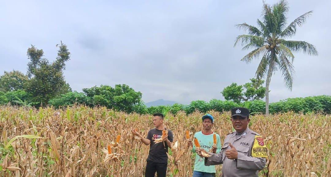 Personel Polsek Anyar Lakukan Pendampingan Dalam Kegiatan Panen Jagung Bersama Dengan Kelompok Tani