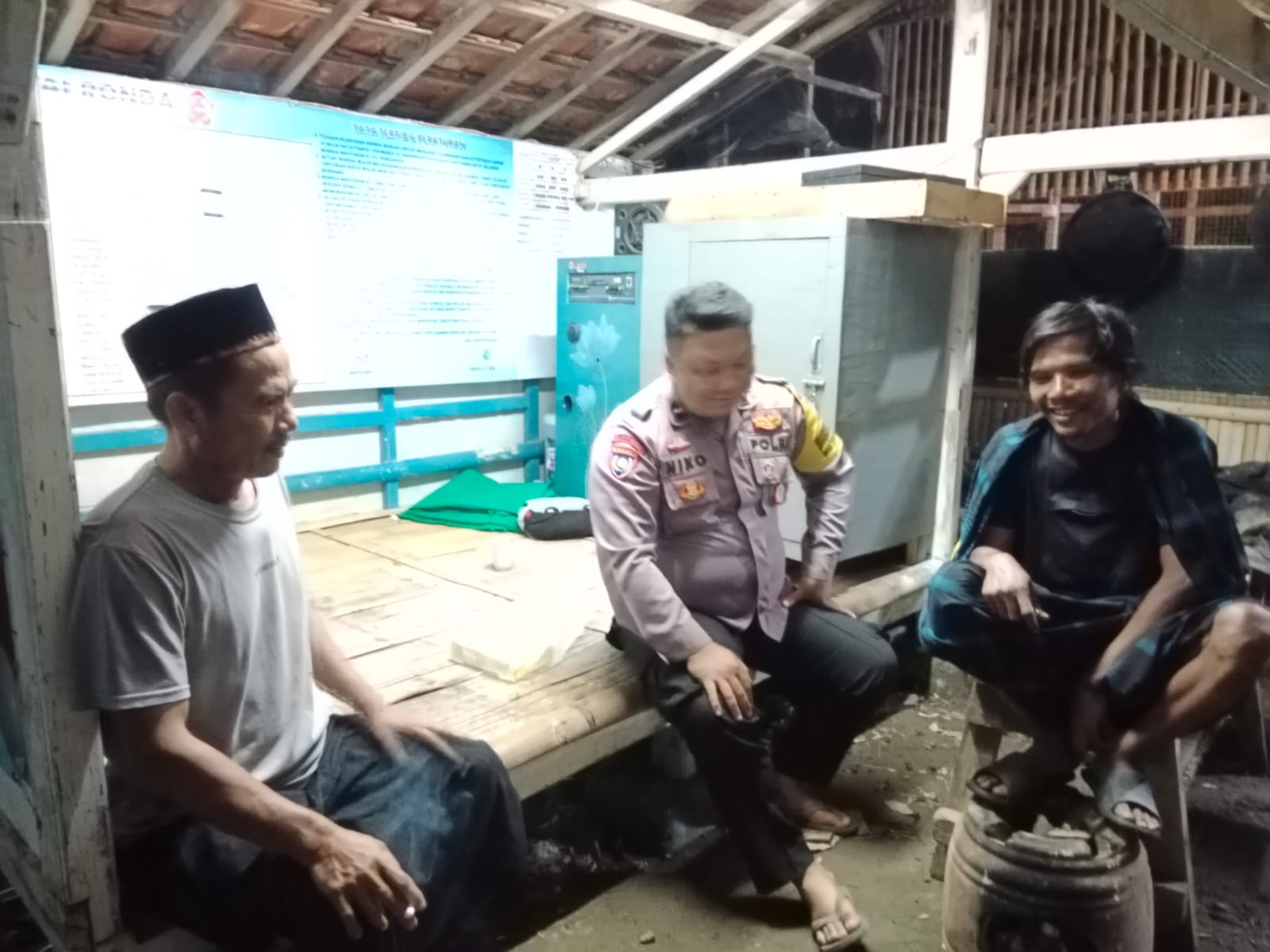 Personel Bhabinkamtibmas Polsek Anyar Polres Cilegon Polda Banten melaksanakan sambang Ronda Siskamling Dalam rangka menjaga Harkamtibmas dan Sebagai bentuk mendukung Program Quick Wins Presisi Polri, Sabtu (14/02).
