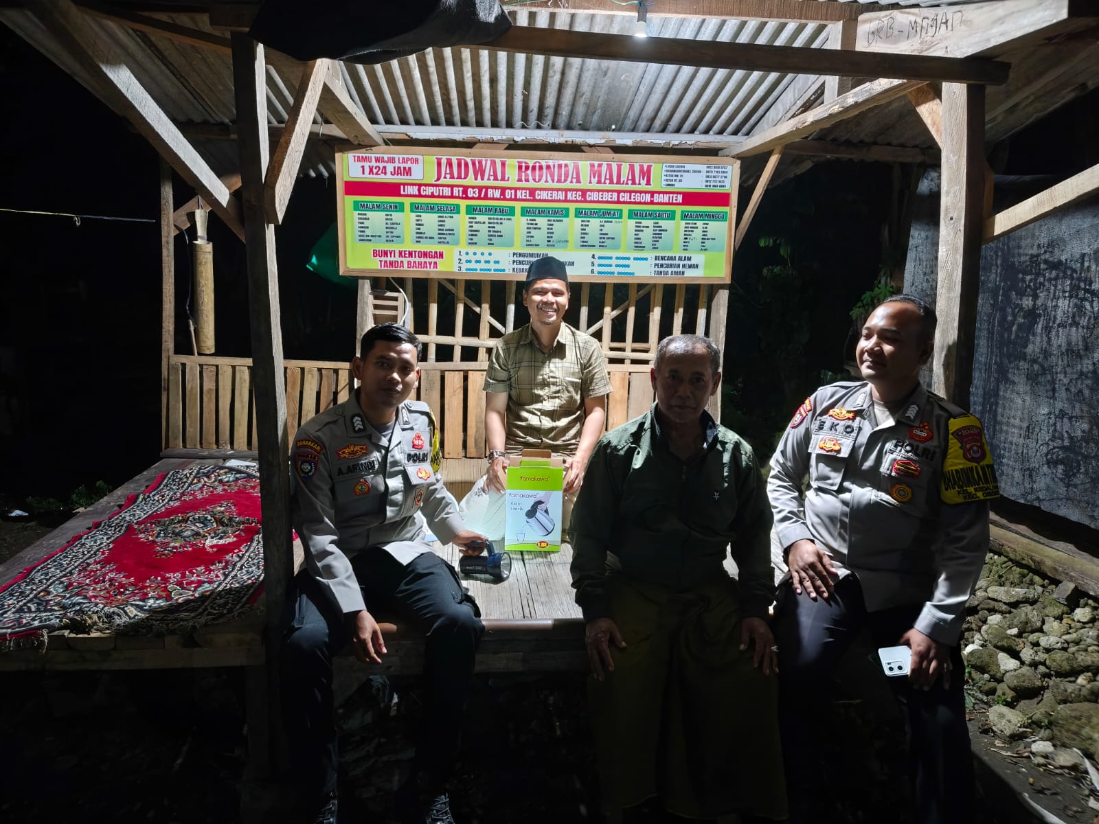 Pada kesempatan tersebut personil Bhabinkamtibmas Kel. Cikerai BRIPKA Ahmad Affandi dan Bhabinkamtibmas Kel. Kedaleman Polsek Cibeber AIPDA Eko Istianto melaksanakan komunikaasi kamtibmas dengan warga binaannya di Pos Satkamling Link. Ciputri Rt/Rw 03/01 Kel. Cikerai Kec. Cibeber Kota Cilegon, Menyampaikan pemahaman dan pengayoman akan arti penting keamanan dan ketertiban dalam kehidupan sehari-hari.