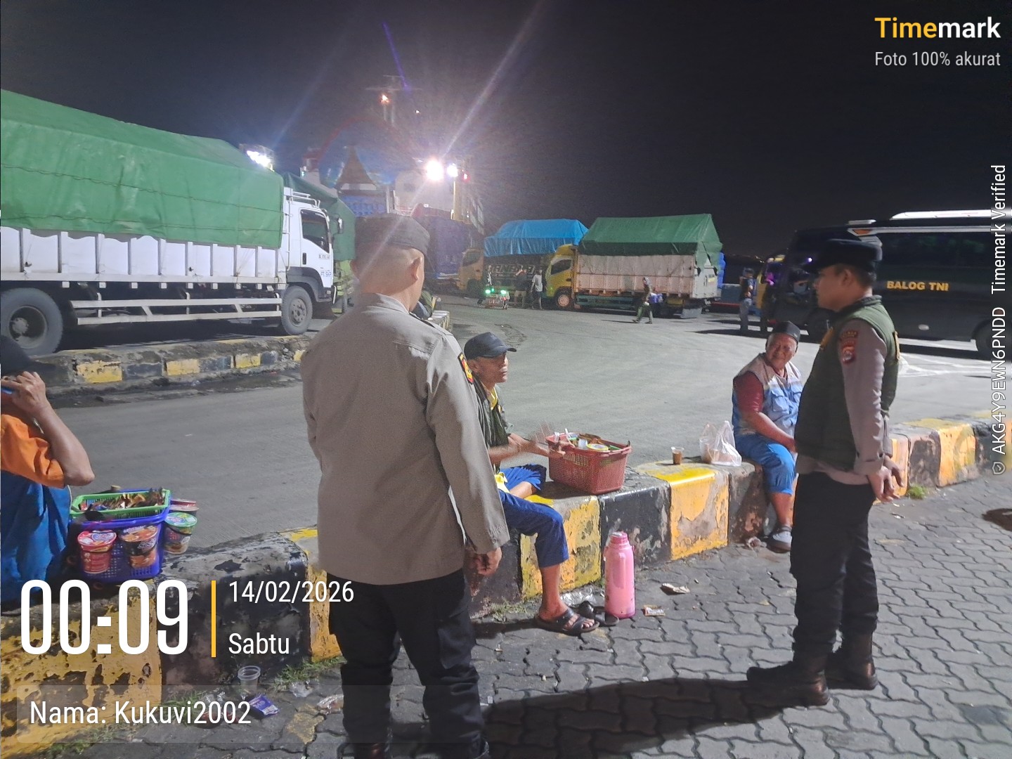 Cilegon - Personil Polsek Kskp Merak Polres Cilegon melaksanakan patroli di kawasan pelabuhan merak memberikan rasa aman dan damai, Sabtu (14/02/2026)