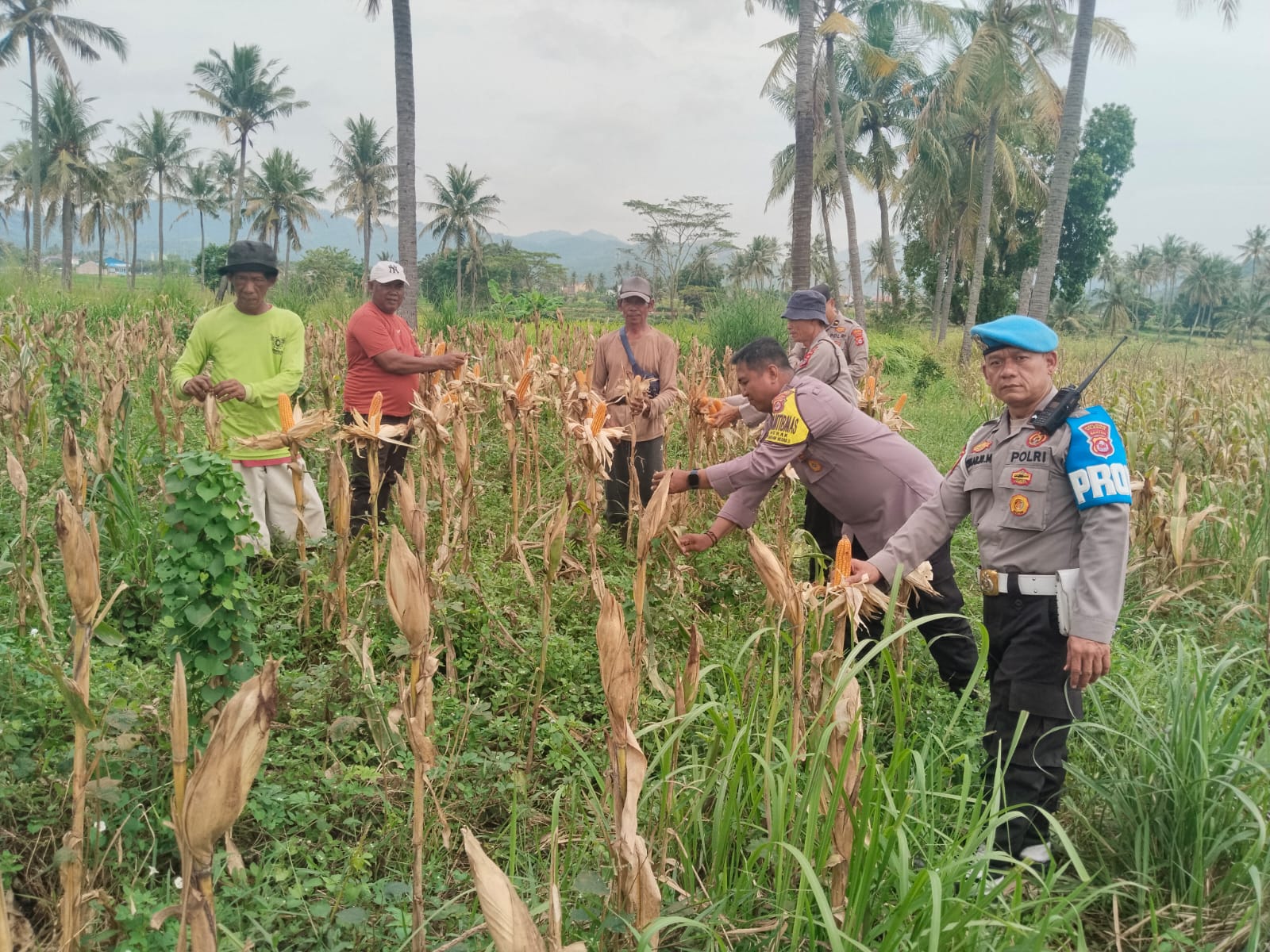 Personil Polsek Kp Merak Tinjau Lahan Jagung di Desa Mangkunegara
