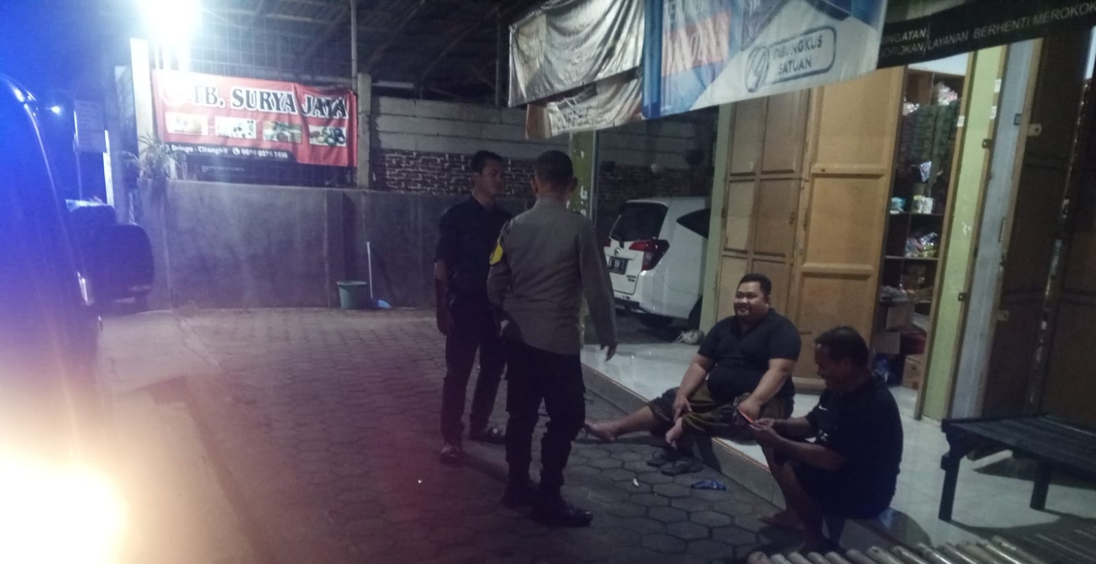 Dalam Giat blue light patrol dan memberikan himbauan kepada warga untuk selalu menjaga situasi kamtibmas di lingkungan sekitar.