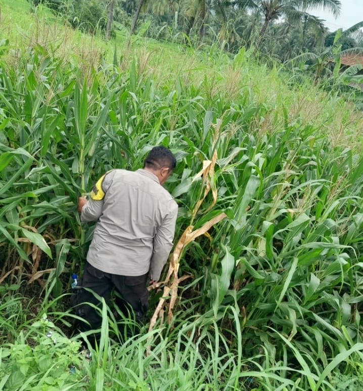 PERSONIL POLSEK PURWAKARTA LAKUKAN PENGECEKAN JAGUNG DI LINGKUNGAN DALIRAN