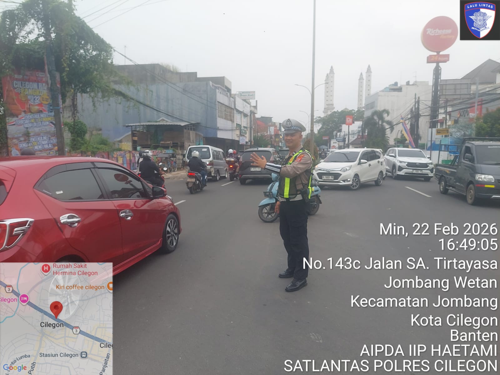 Cilegon – Polres Cilegon Polda Banten, Dalam Mewujudkan Aksi Nyata Pelayanan Kepada Masyarakat, Personil Satlantas Polres Cilegon Polda Banten Laksanakan PECAK (Pergelaran Cepat Anggota Kepolisian) Pengaturan Lalu lintas di wilayah perkotaaan terutama di titik rawan kemacetan dan kecelakaan lalu lintas, Minggu (22/02/2026).