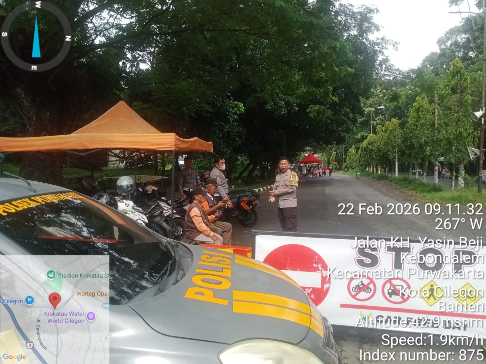 Cilegon – Polres Cilegon Polda Banten, Sebagai pelaksanaan program Polres Cilegon Menyapa, Personil Polsek Purwakarta Polres Cilegon hadir dan melaksanakan sambang pada kegiatan rutin mingguan yaitu Car Free Day di sepanjang jalan KH. Yasin Beji Kel. Kotabumi Kec. Purwakarta Kota Cilegon. Minggu (22/02/2026).