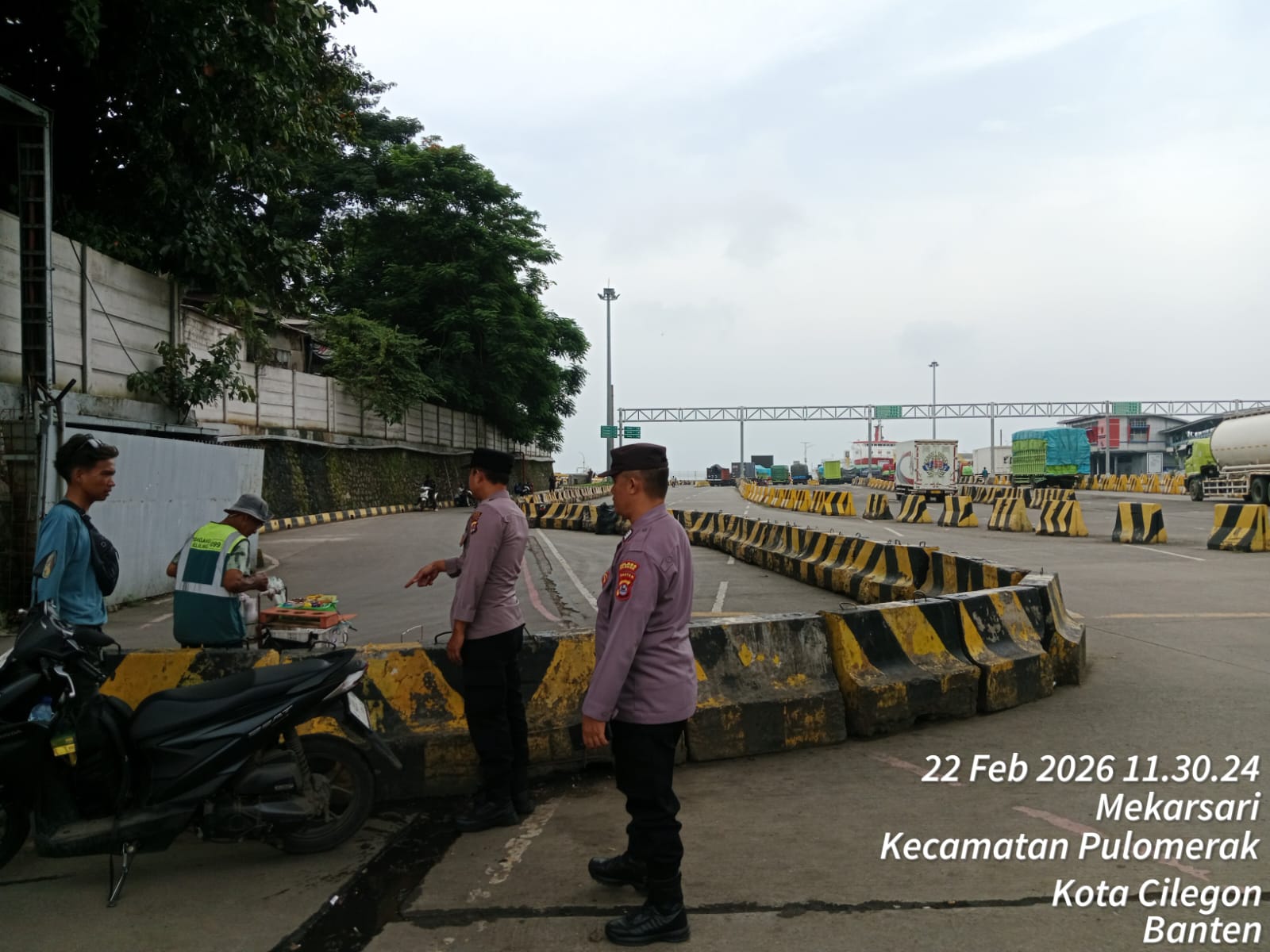 Cilegon - Personel Polsek Kskp Merak Polres Cilegon Polda Banten melaksanakan sambang dan patroli kawasan pelabuhan merak dalam rangka menjaga Harkamtibmas di Kawasan Pelabuhan Merak, Minggu (22/02/2026).