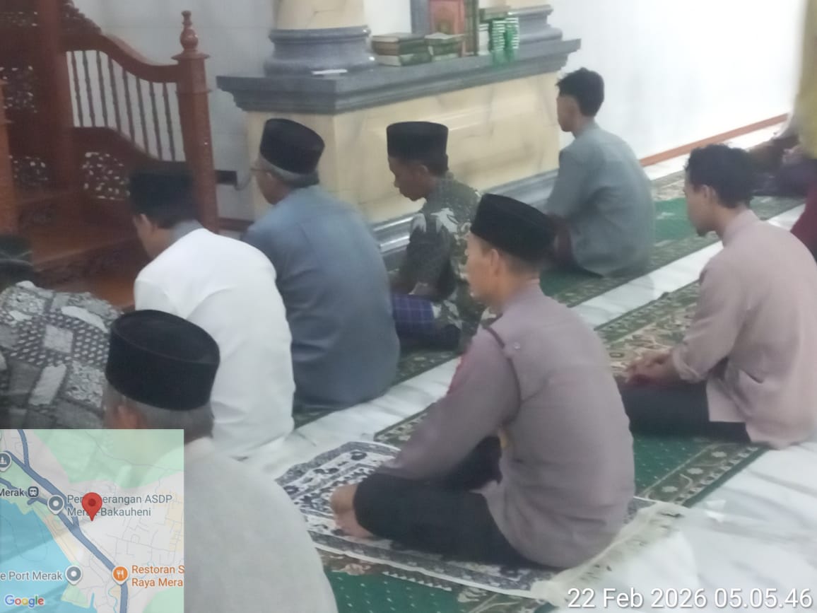 Cilegon – Personil Kskp Merak Polres Cilegon Polda Banten menggelar kegiatan Pembinaan Rohani dengan shalat subuh keliling di Masjid Yang ada Di Daerah hukum Polsek Kp Merak Polres Cilegon Polda Banten, Minggu (22/02/2026).