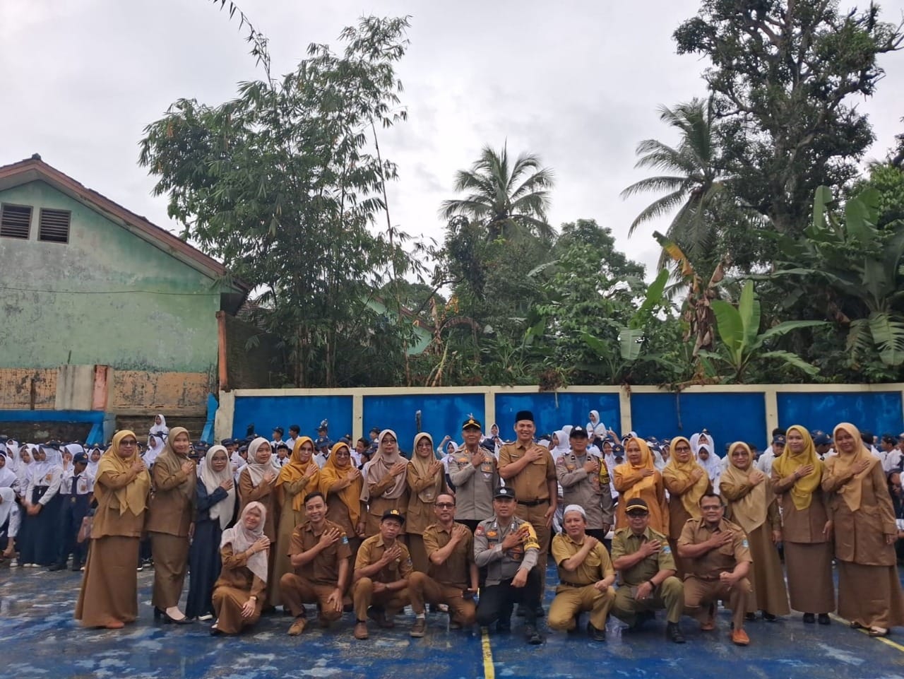 kelas VII, VIII dan IX SMPN 1 Mancak dan para Dewan Guru SMPN 1 Mancak.
