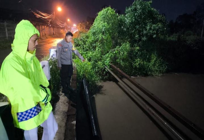 -Polres Cilegon-Polda Banten. Senin.23 Februari 2026 – Setelah hujan deras mengguyur wilayah Kecamatan Purwakarta, Kota Cilegon, personil piket jaga Polsek Purwakarta segera melakukan pemantauan terhadap kondisi aliran beberapa kali dan sungai di wilayah hukumnya. Kegiatan ini bertujuan memastikan debit air dalam kondisi aman dan tidak membahayakan masyarakat sekitar.