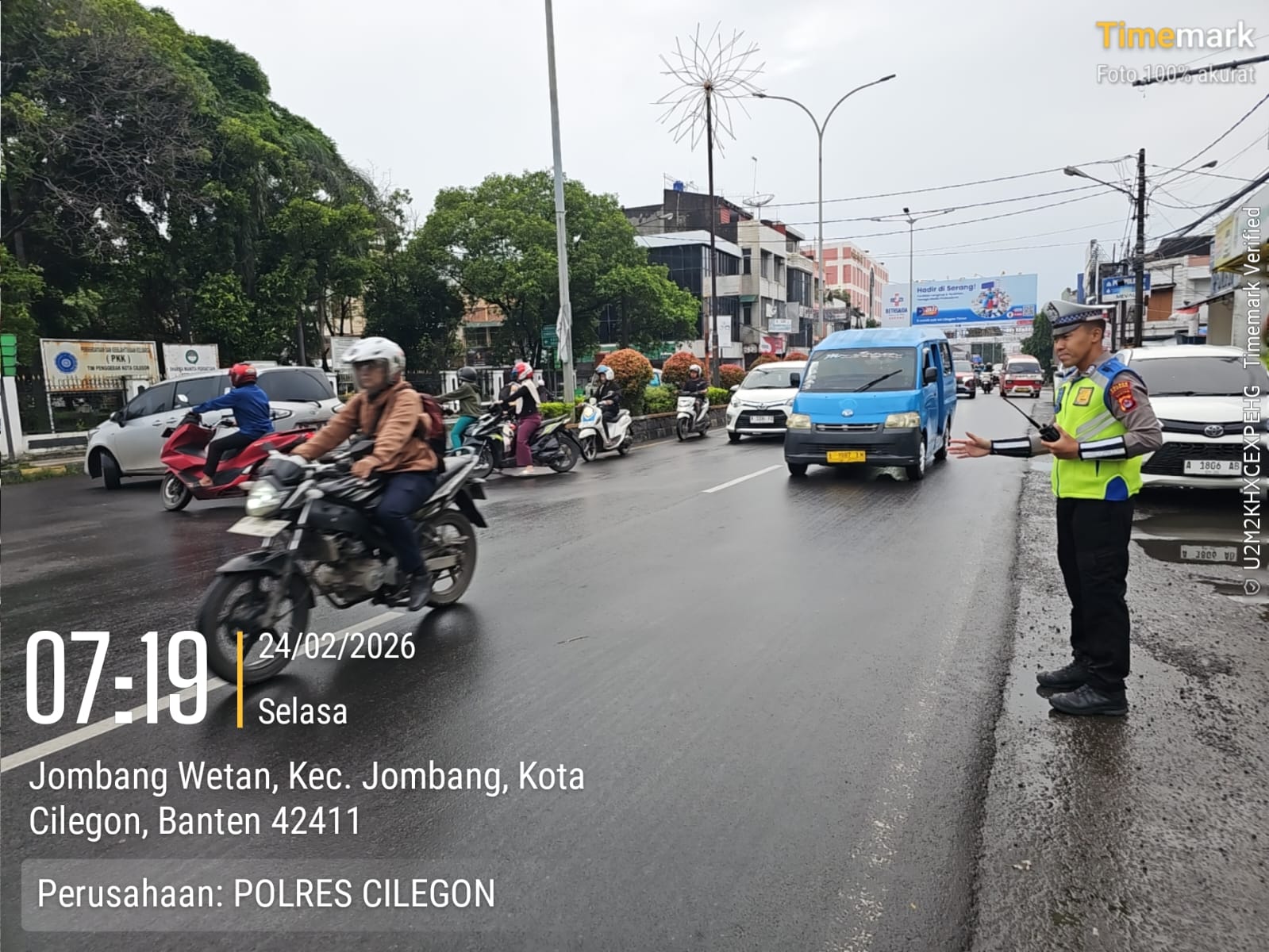 Cilegon, Satlantas Polres Cilegon Polda Banten – Berikan pelayanan kepada masyarakat Kasat lantas Polres Cilegon AKP Ridwan memerintahkan jajaran lalulintas untuk melaksanakan pengaturan lalu lintas di penggal – penggal jalan yang rawan kemacetan di Kota Cilegon, (Selasa,24/2/2026)