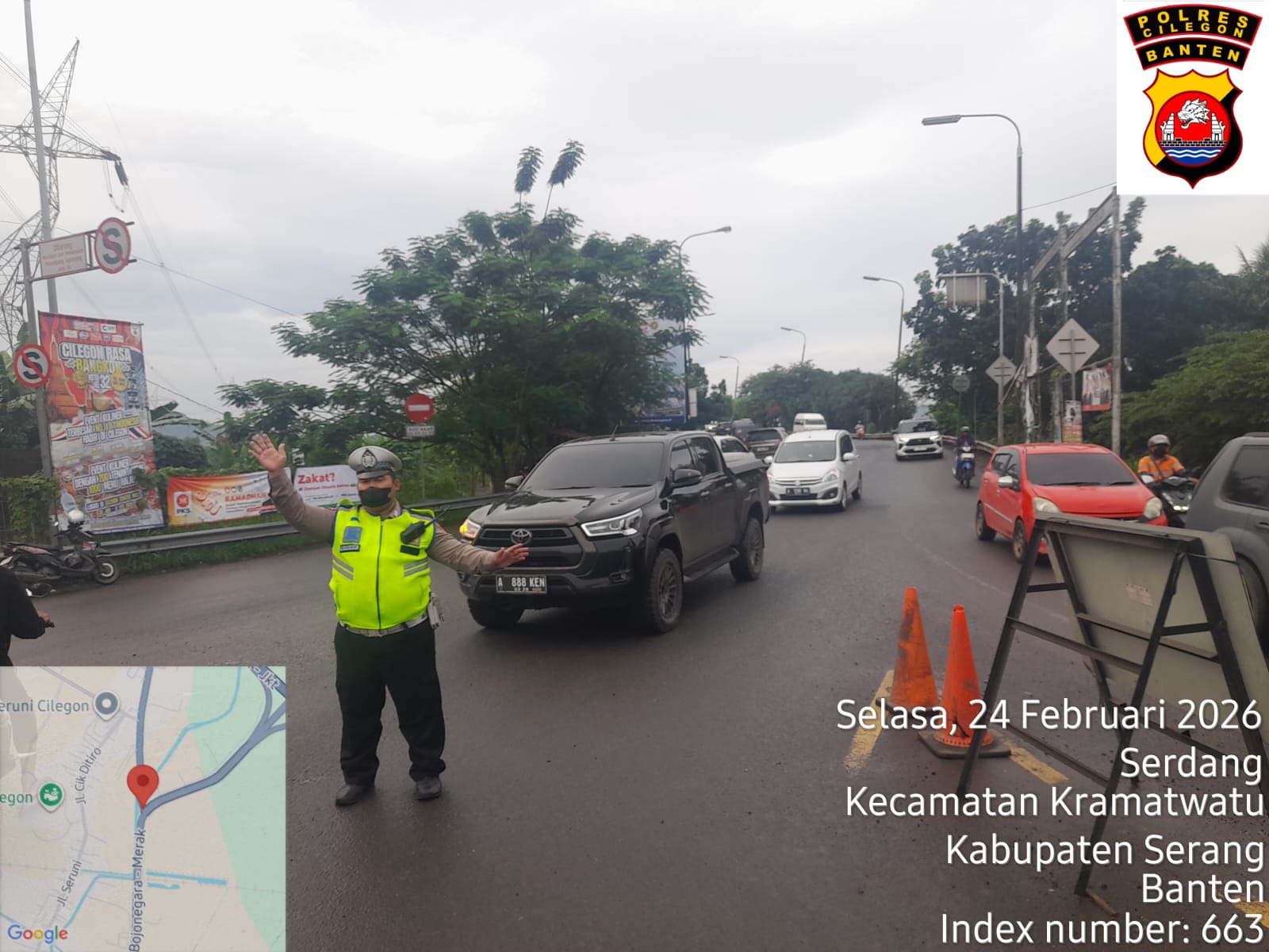 Cilegon, Satlantas Polres Cilegon Polda Banten – Berikan pelayanan kepada masyarakat Kasat lantas Polres Cilegon AKP Ridwan memerintahkan jajaran lalulintas untuk melaksanakan pengaturan lalu lintas di penggal – penggal jalan yang rawan kemacetan di Kota Cilegon, (Selasa,24/2/2026)