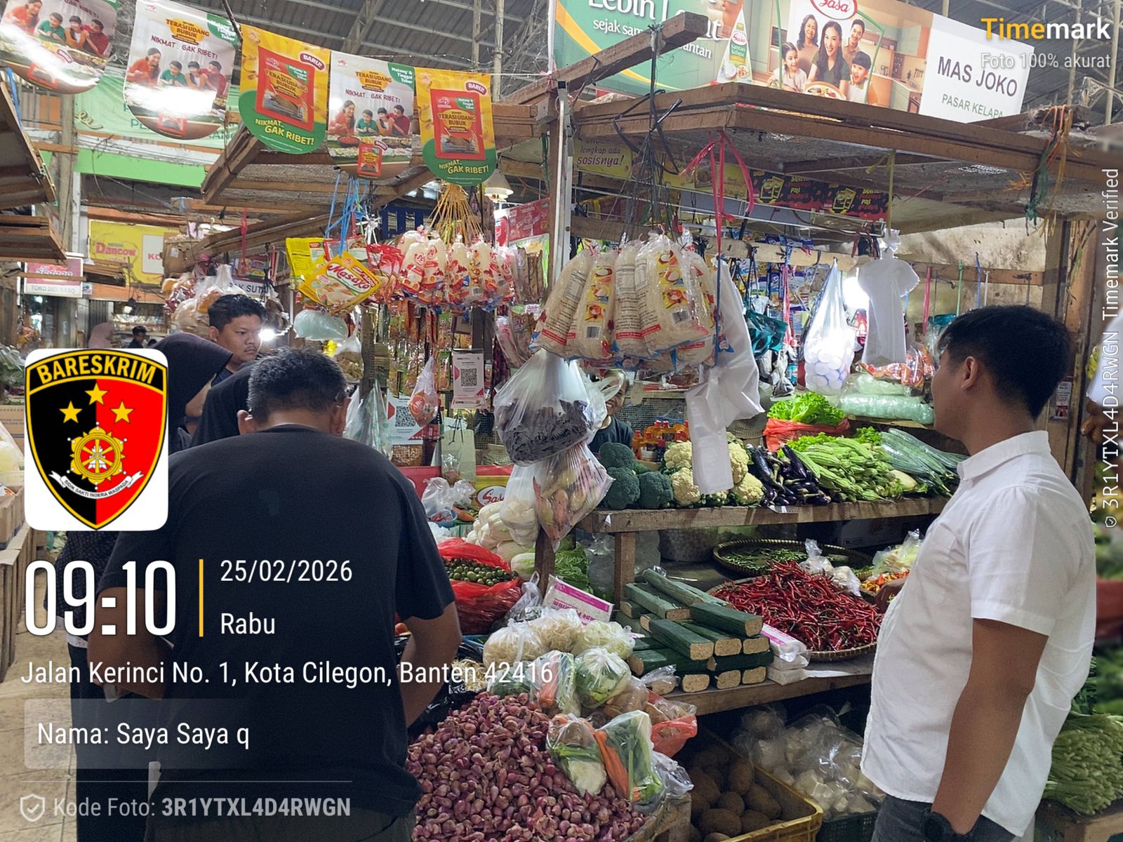 Cilegon – Unit II Satreskrim Polres Cilegon Polda Banten melakukan pengecekan terhadap persediaan dan harga bahan pangan di Pasar Kelapa, Cilegon, tahun 2026. Rabu tanggal 25 02 2026.