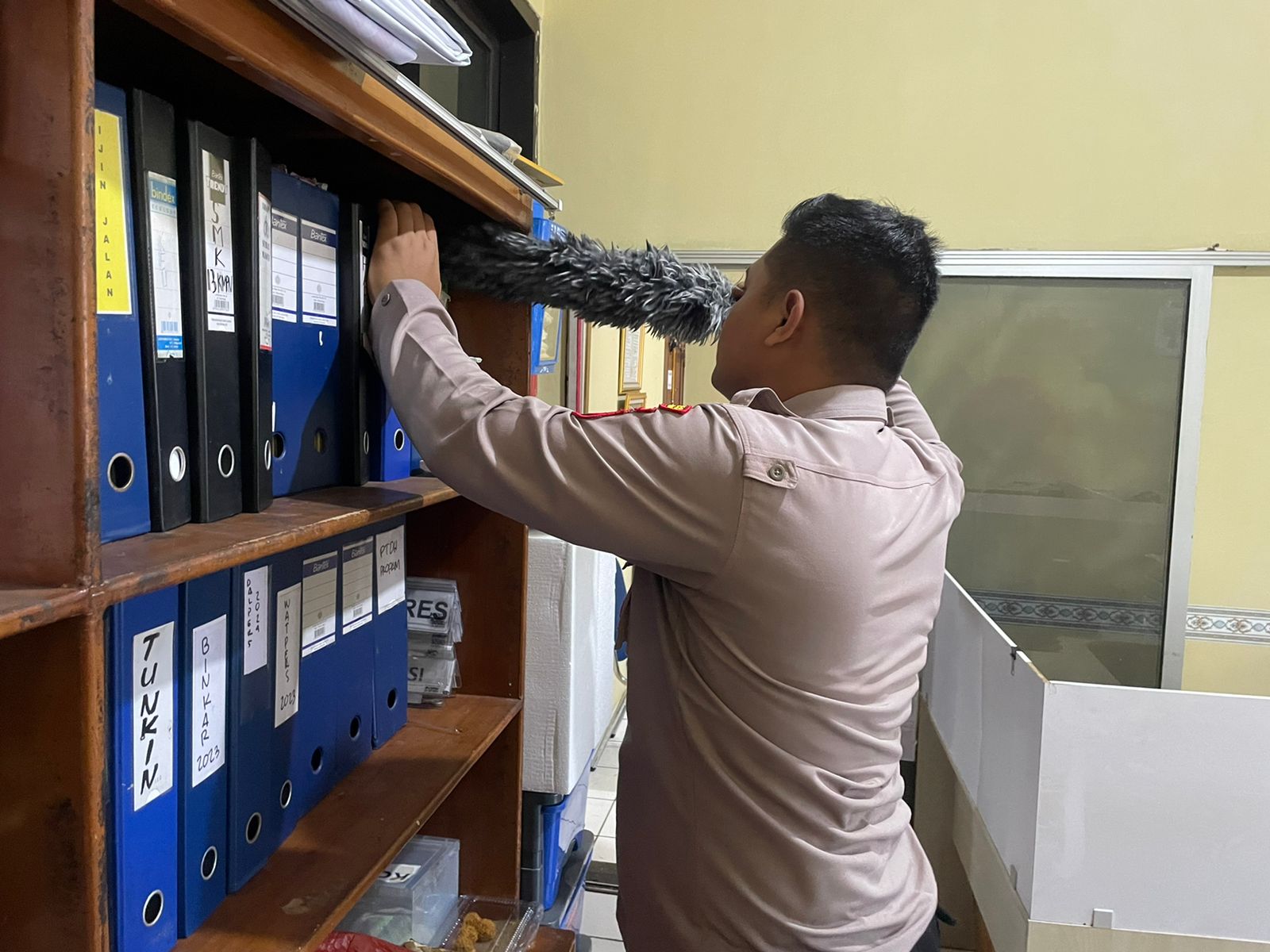 Anggota Bag SDM Polres Cilegon, Selalu dalaam melaksankan kegiatan membersihkan ruangan kerja secara rutin.