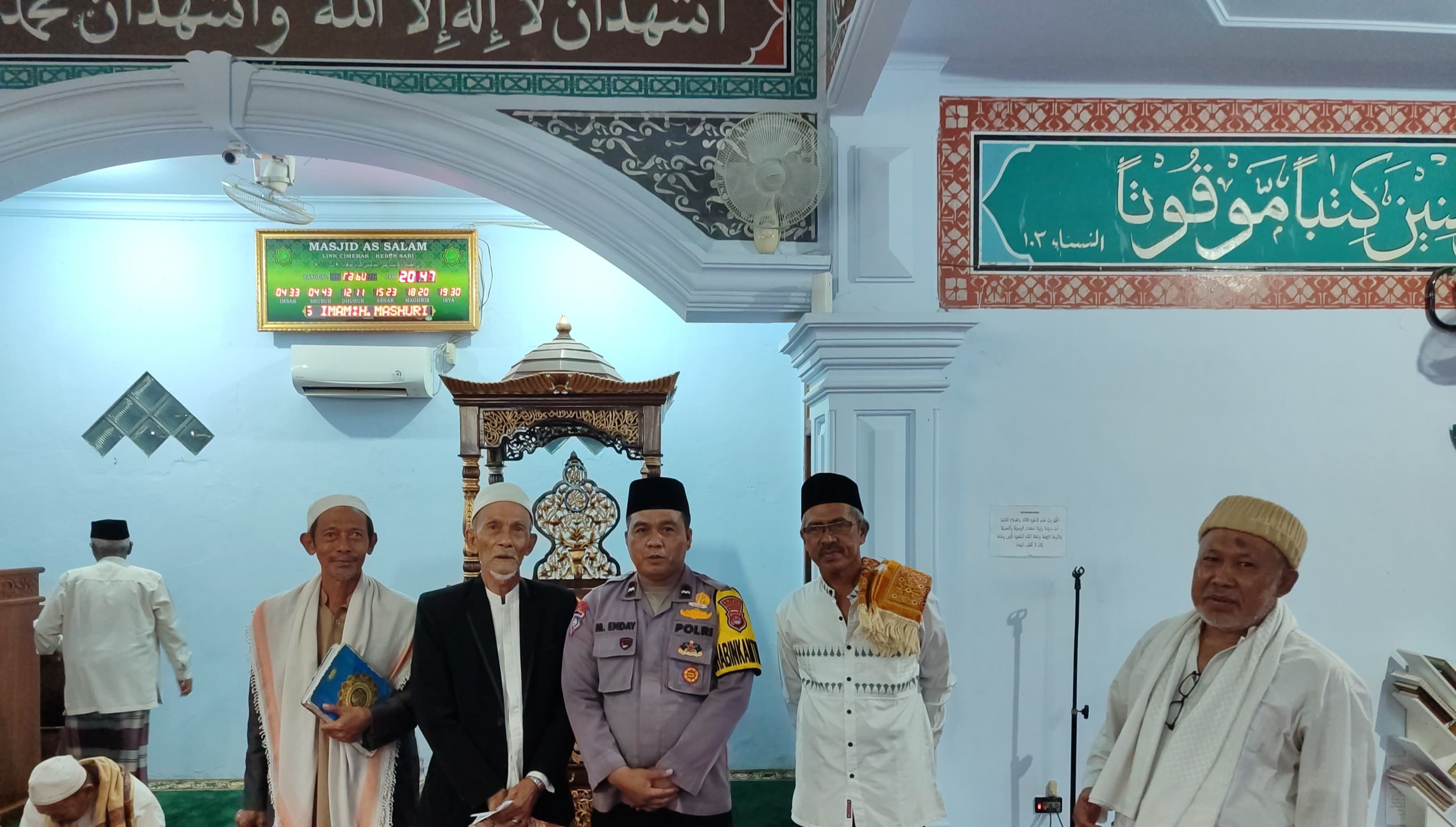 Cilegon - Bhabinkamtibmas polsek Ciwandan Polres Cilegon Polda Banten Silahturahmi Dan Tarawih Keliling Bersama warga Masyarakat lingkungan yang bertempat di masjid lingkungan binaannya, Minggu (01/03/2026).