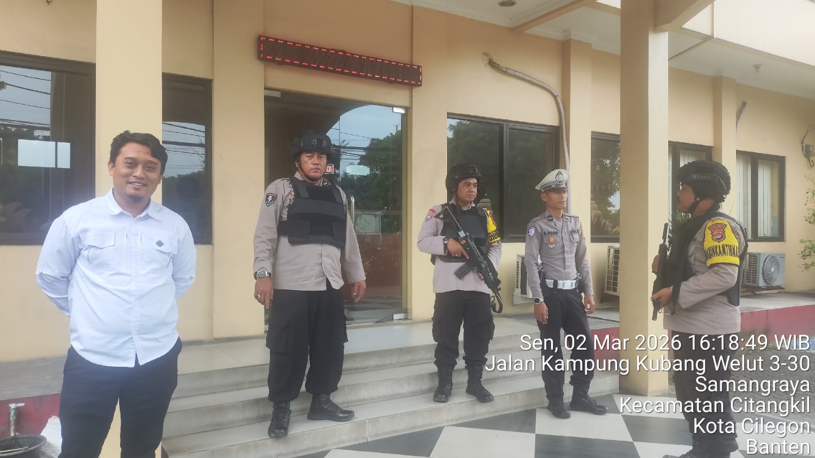Cilegon – Polres Cilegon Polda Banten Guna mengantisipasi adanya potensi ancaman dan gangguan terhadap keamanan kantor maupun keselamatan personel piket jaga, Personel Polsek Ciwandan Polres Cilegon selalu tingkatkan kesiapsiagaan dan kewaspadaan dengan rutin menggelar kegiatan Sistem Pengamanan Mako (Sispam Mako), Senin (02/03/2026).