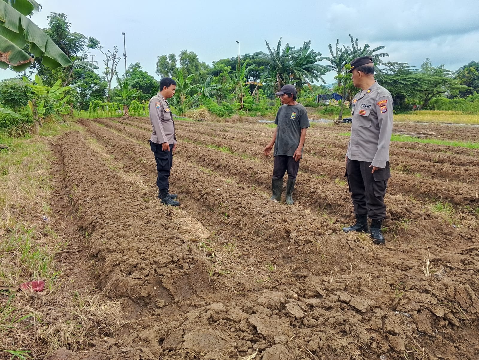 Panit Binmas Dan Bhabinkamtibmas Polsek Ciwandan Mengecek Lahan Yang Akan Ditanami Jagung.